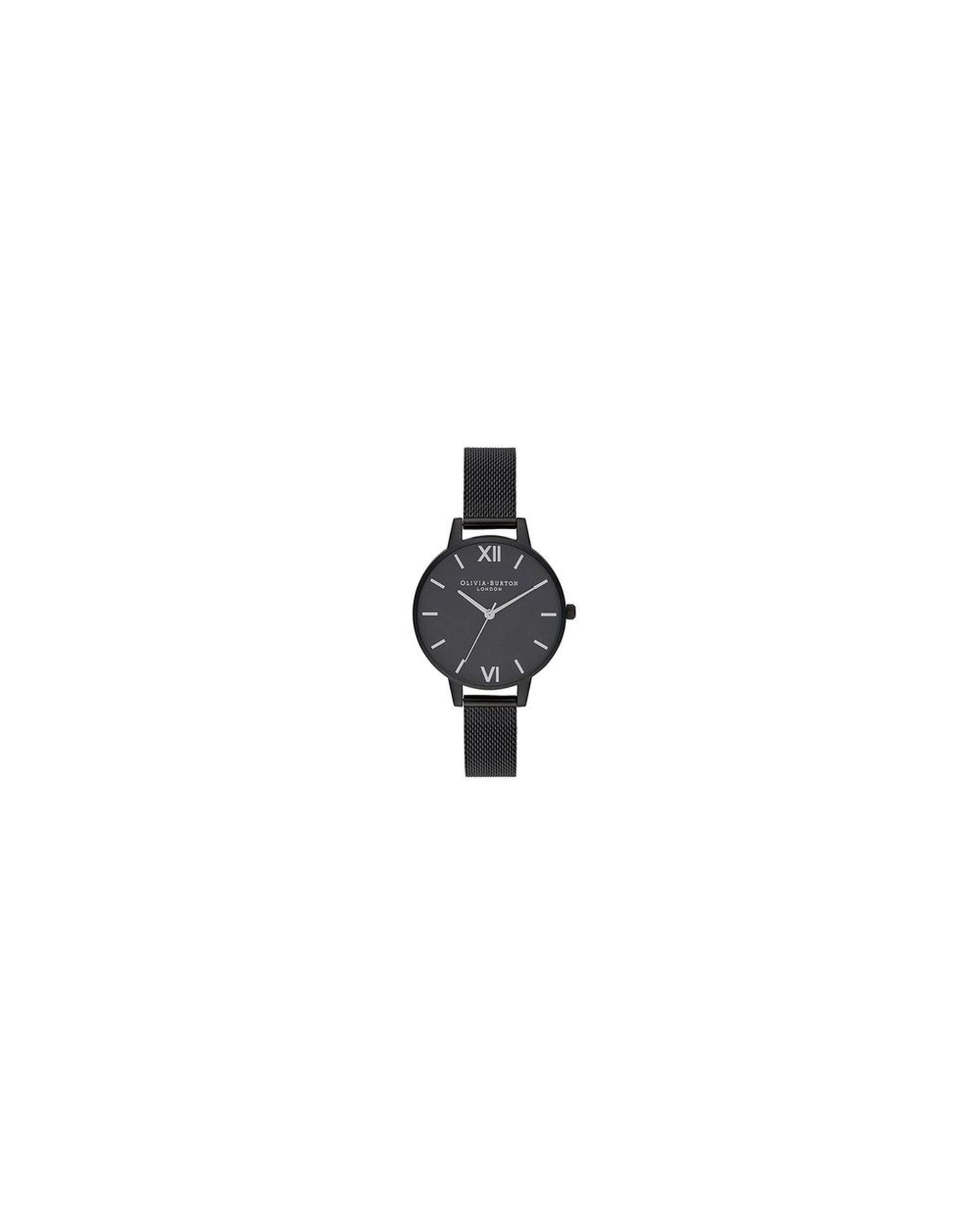 This women’s watch features a sleek black stainless steel case and bracelet, offering a modern and elegant look. The watch is powered by a quartz movement and displays the time with an analog dial. Its design includes a Milanese mesh strap and a jewelry hook closure, making it both stylish and comfortable to wear. The watch is water-resistant up to 3 ATM, suitable for everyday use.