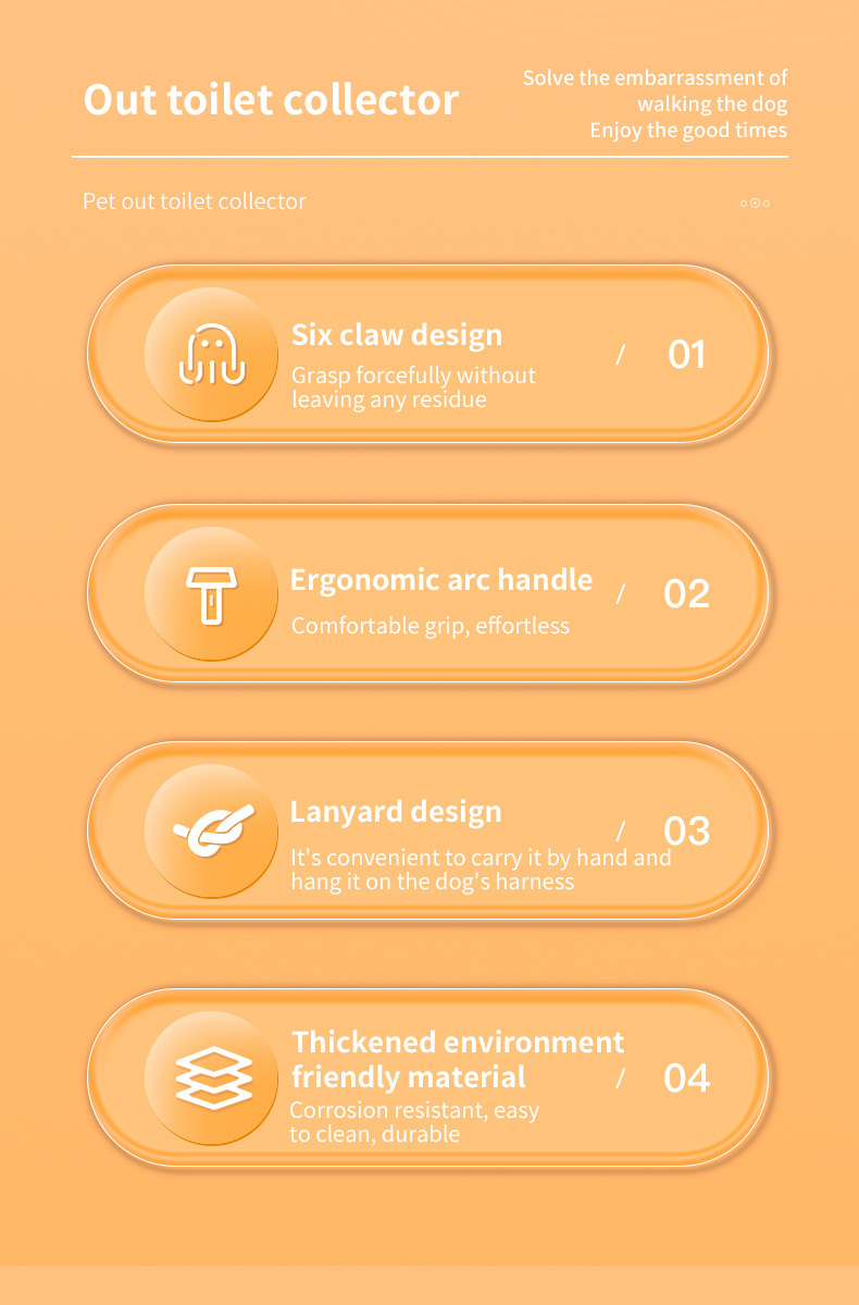 This portable dog pooper scooper features a hygienic design with an integrated bag dispenser, making pet waste cleanup quick and easy. Its lightweight construction and ergonomic handle allow for effortless use during walks, backyard cleaning, or travel. The durable material ensures long-lasting performance and easy maintenance, providing a sanitary solution for responsible pet owners.