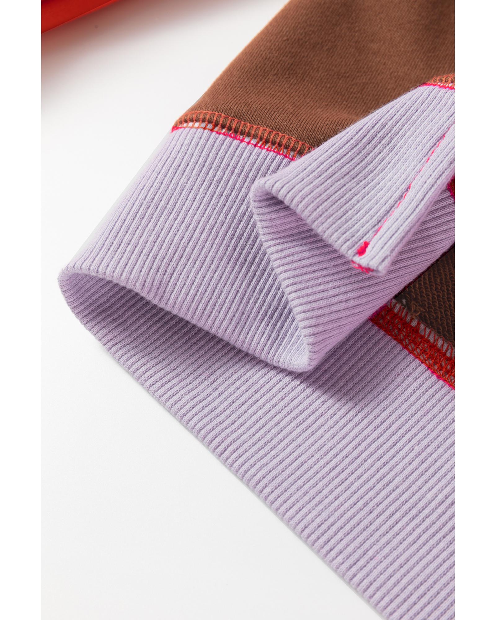 This orange color block side slit raglan sleeve top offers a trendy and comfortable loose fit, perfect for casual wear. Its modern design features color blocking and side slits, complemented by classic raglan sleeves for a stylish look. Made from a blend of polyester and cotton, it provides medium elasticity for ease of movement and all-day comfort.