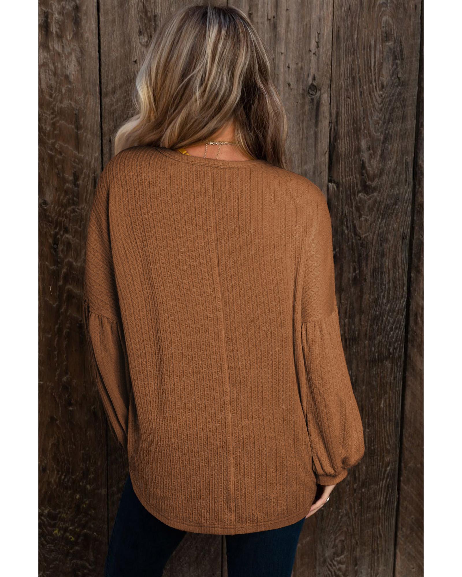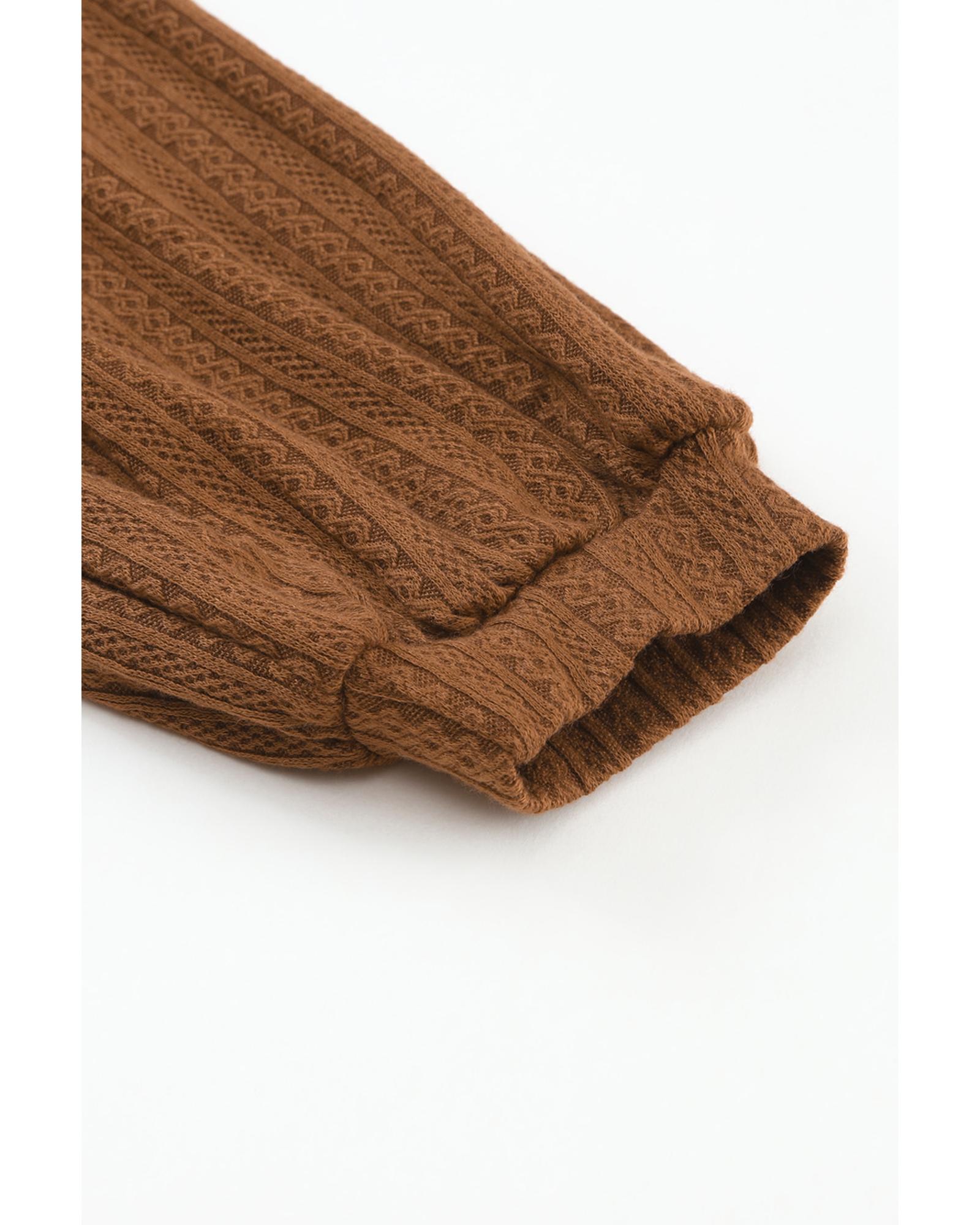 This faux knit jacquard puffy long sleeve top combines a trendy fitted silhouette with cozy comfort, making it an essential piece for a boho-inspired wardrobe. Designed with a classic crew neck, dropped shoulders, and long balloon sleeves, it offers a stylish yet relaxed look suitable for cooler days.