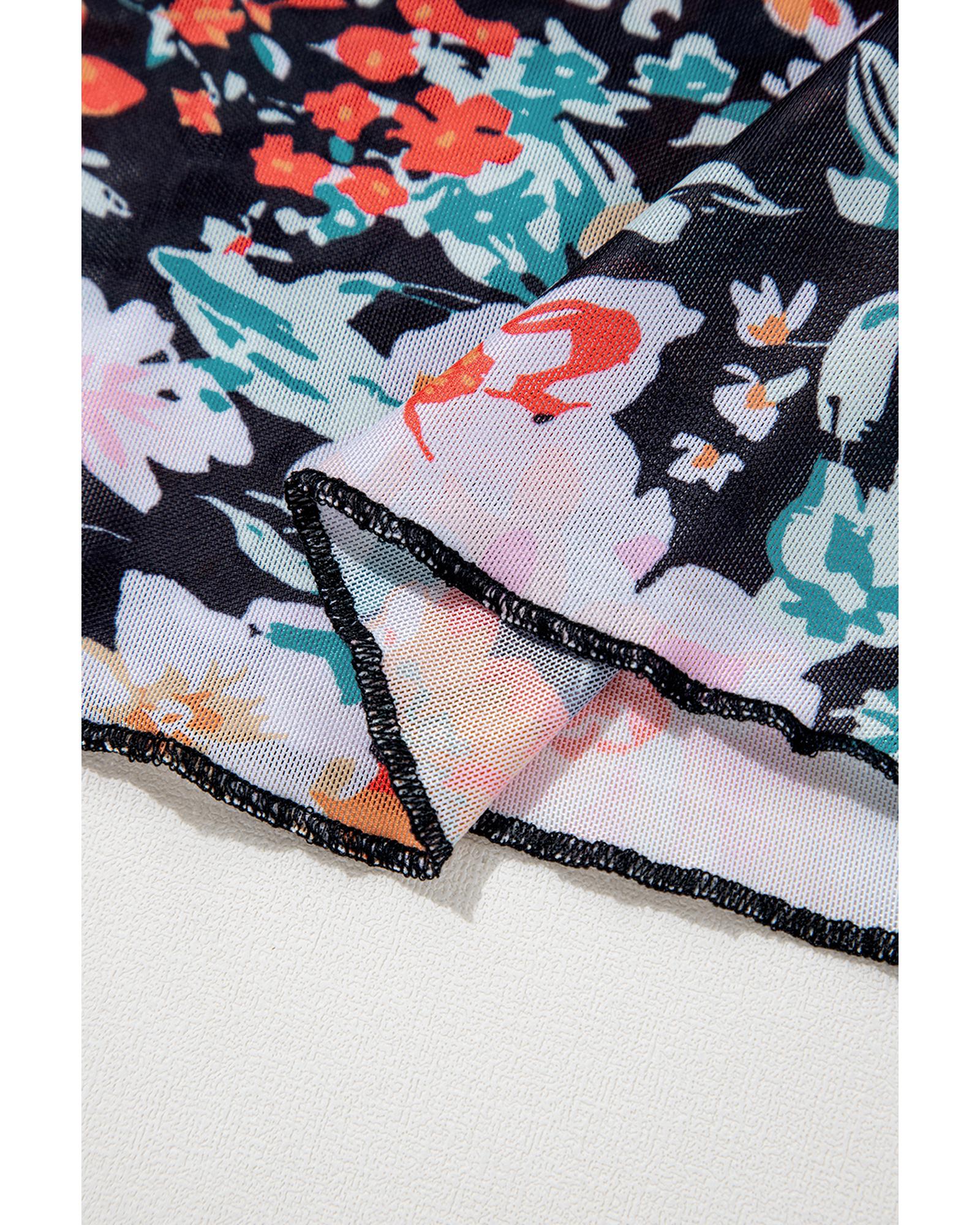 This floral mesh crop top features a slim fit design with long sleeves, offering a trendy and youthful look. The floral pattern adds a charming touch, making it suitable for various styling options. Crafted with high elasticity, it ensures a comfortable fit for different body types.