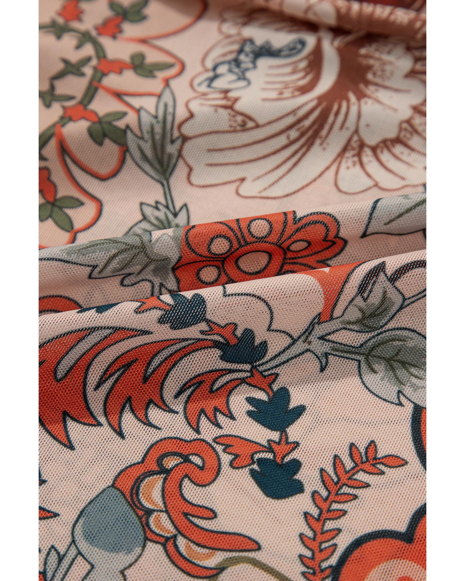 Orange Floral Print Deep V Neck Knot Bell Sleeve Blouse – L