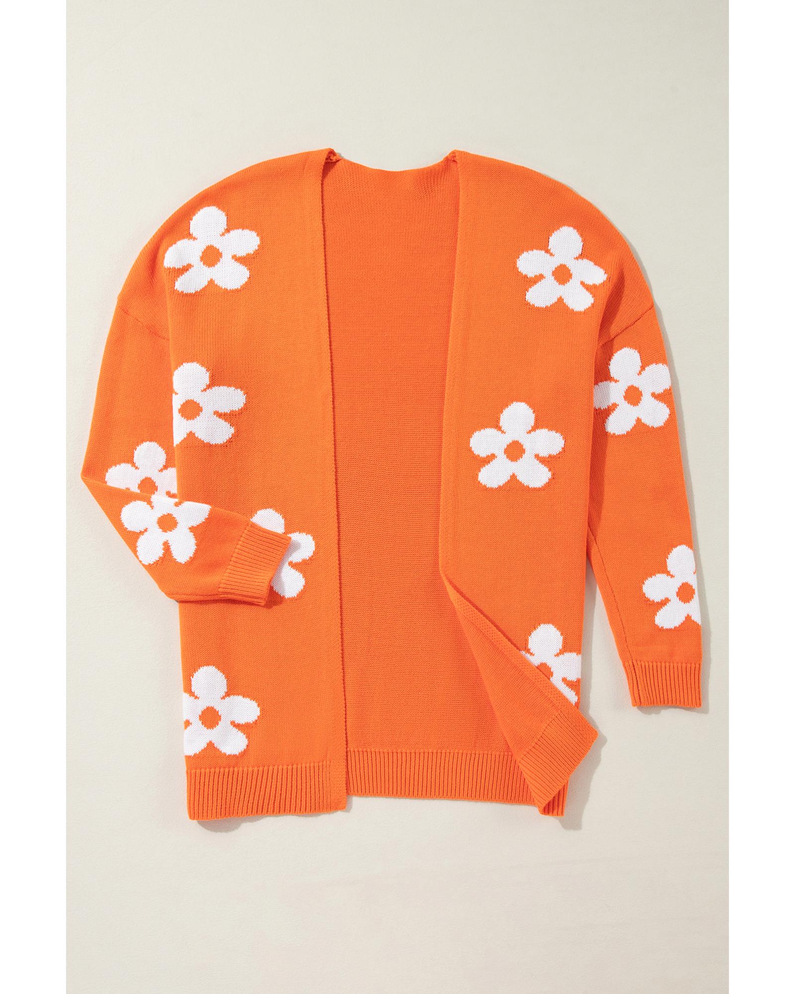 Orange Floral Print Knitted Open Front Loose Cardigan – XL