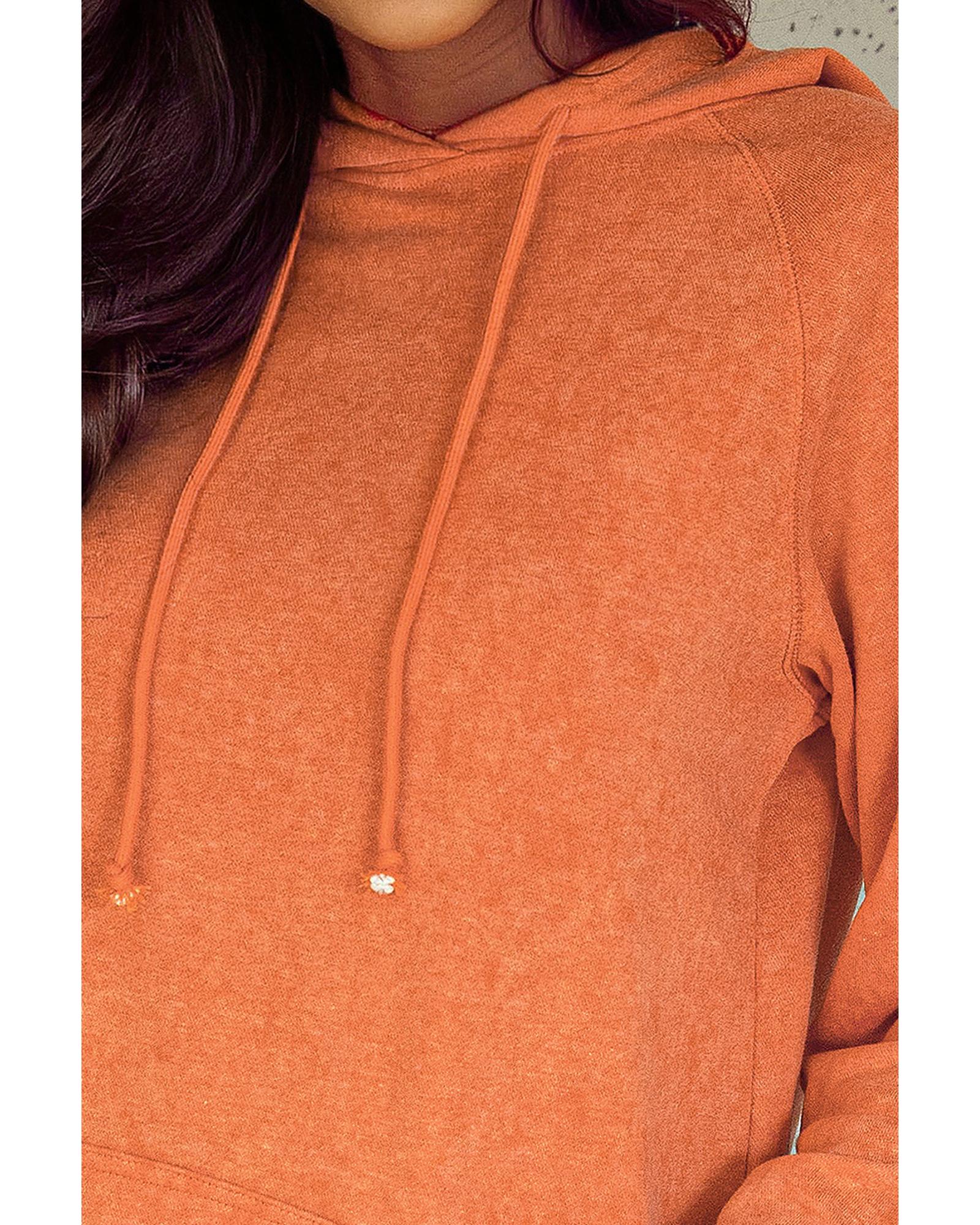 Orange Mineral Wash Kangaroo Pocket Drawstring Pullover Hoodie – M