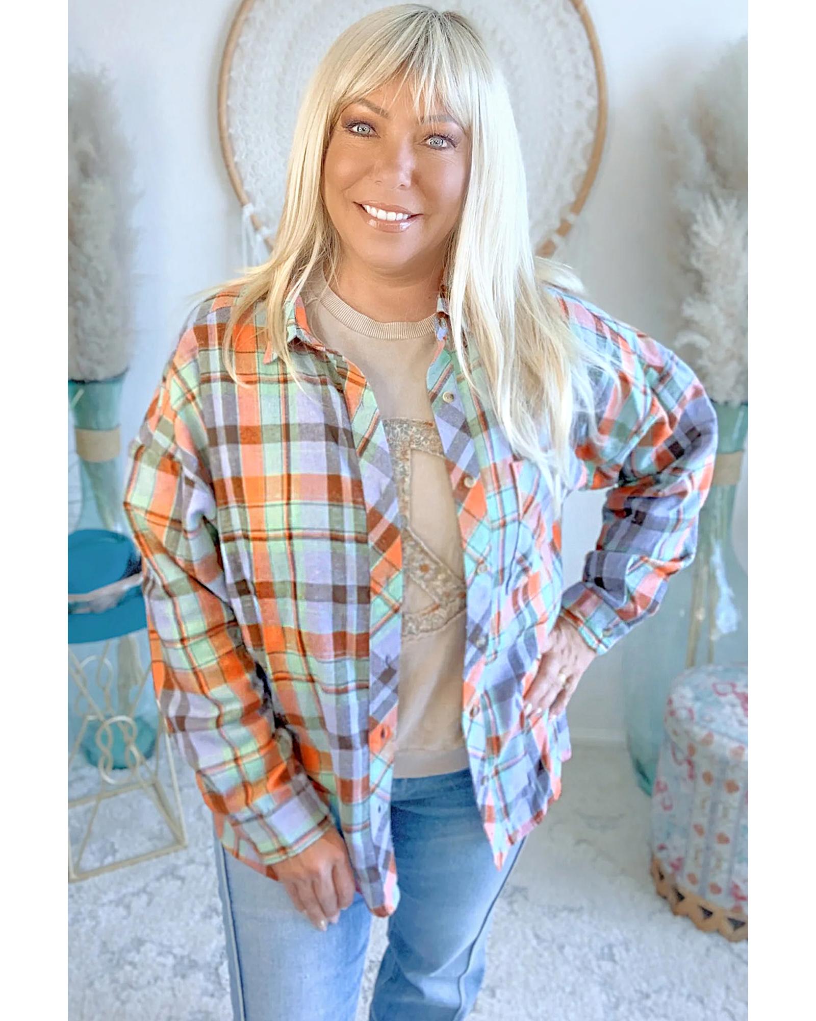 Orange Plus Size Plaid Print Buttoned Shirt – 2X