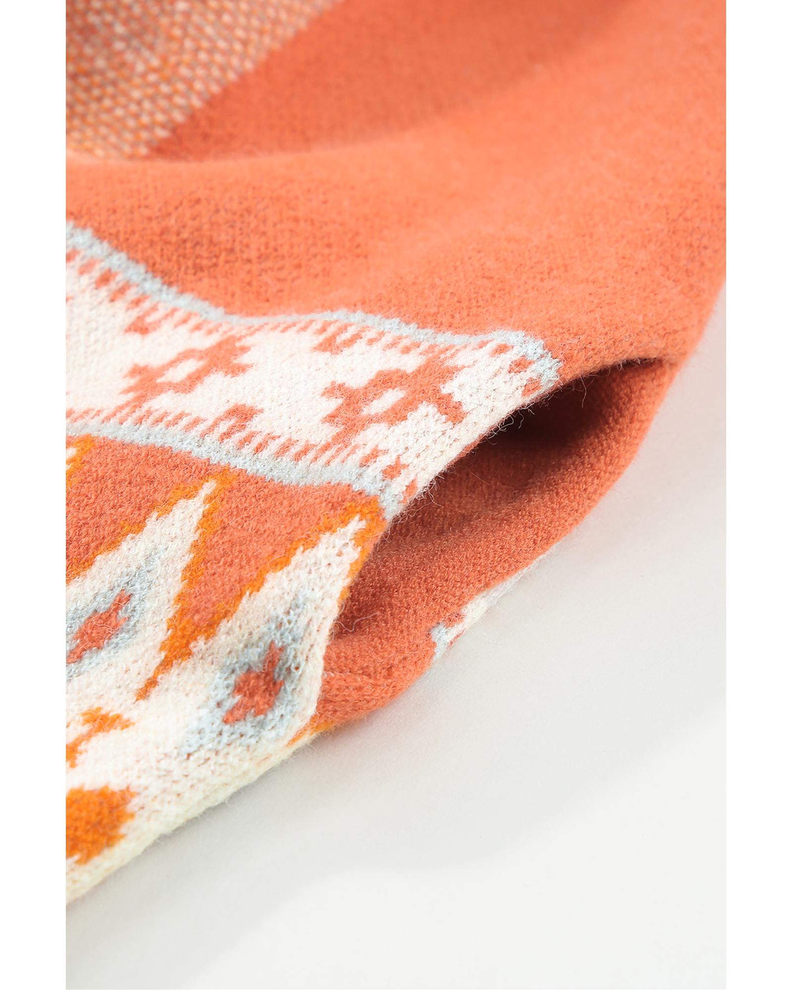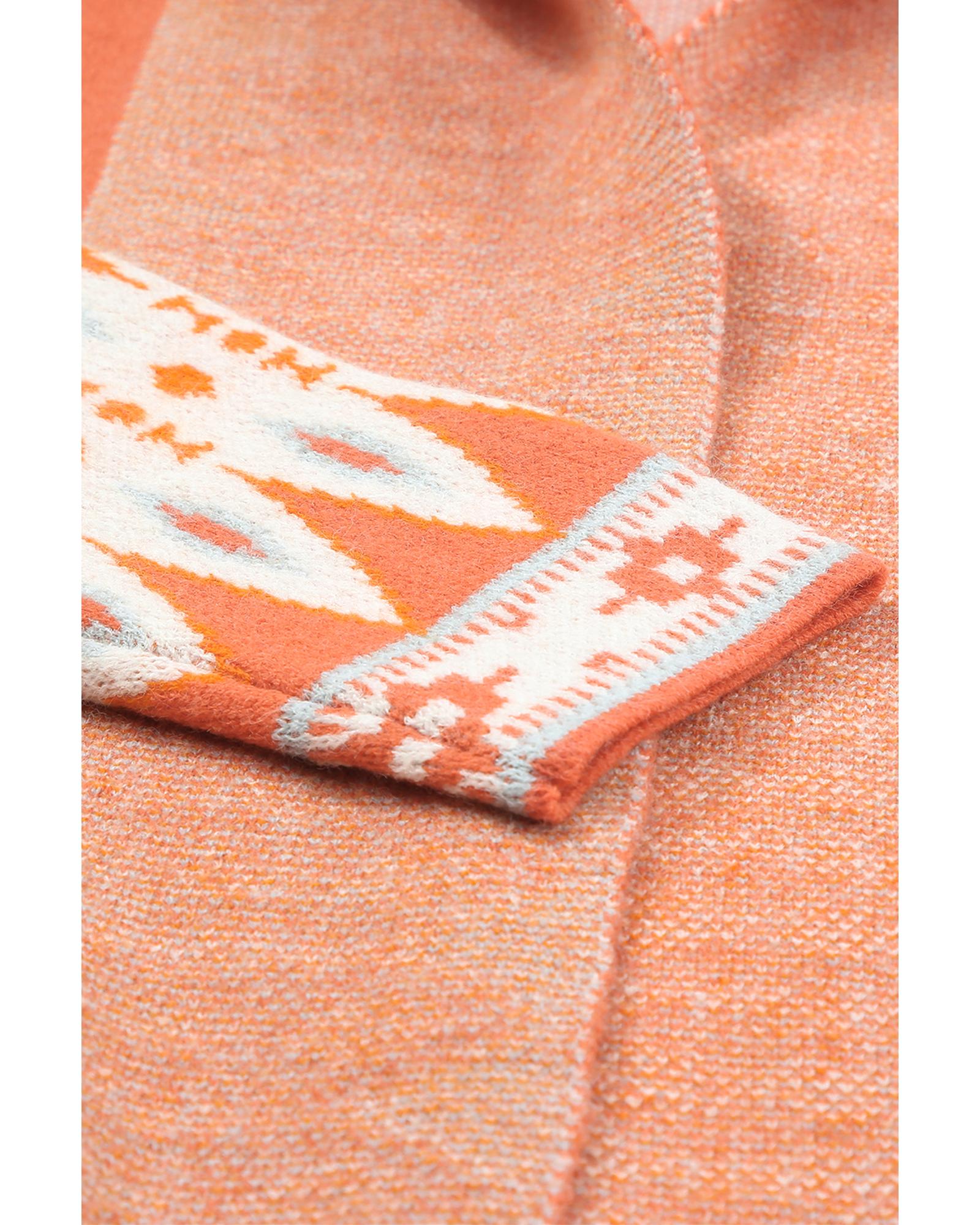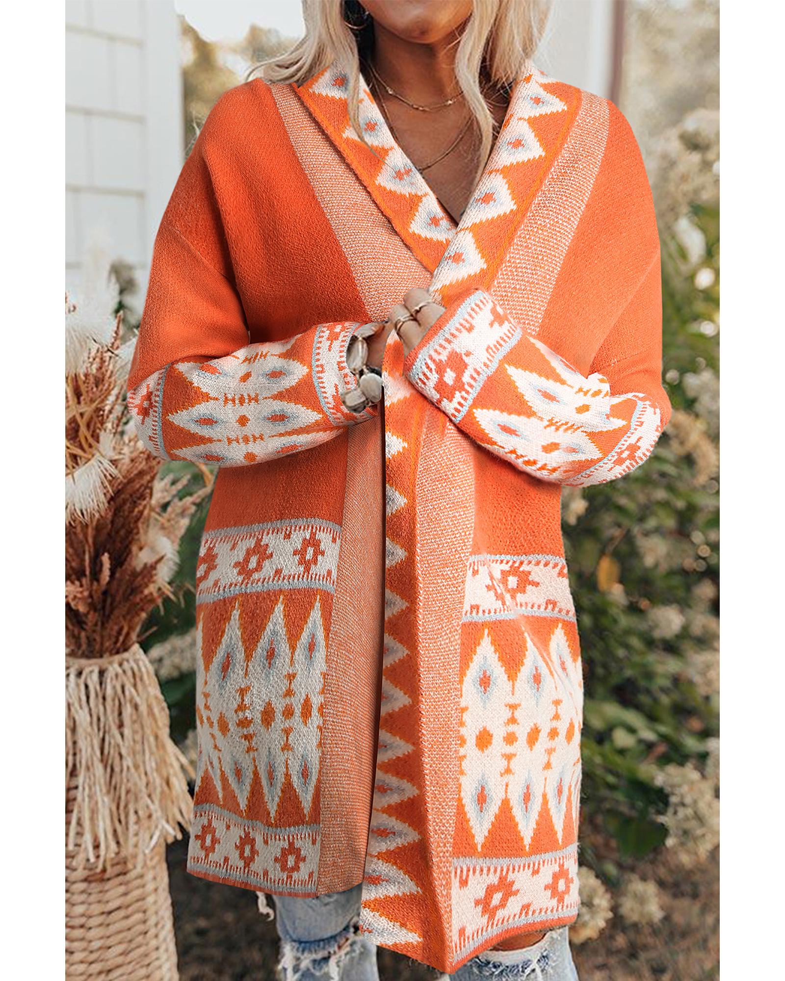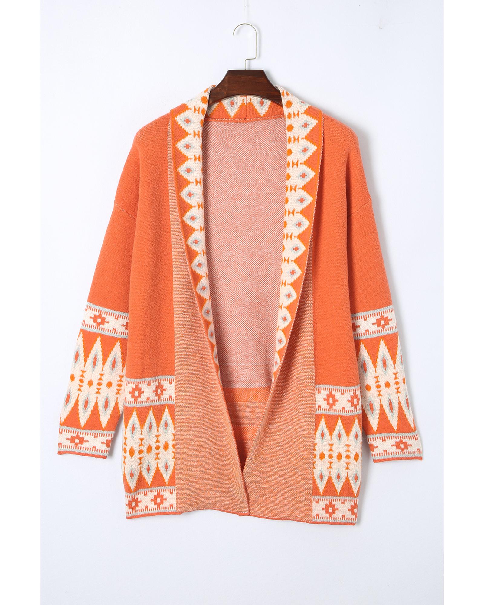 Orange Printed Aztec Print Open Front Knitted Cardigan – M