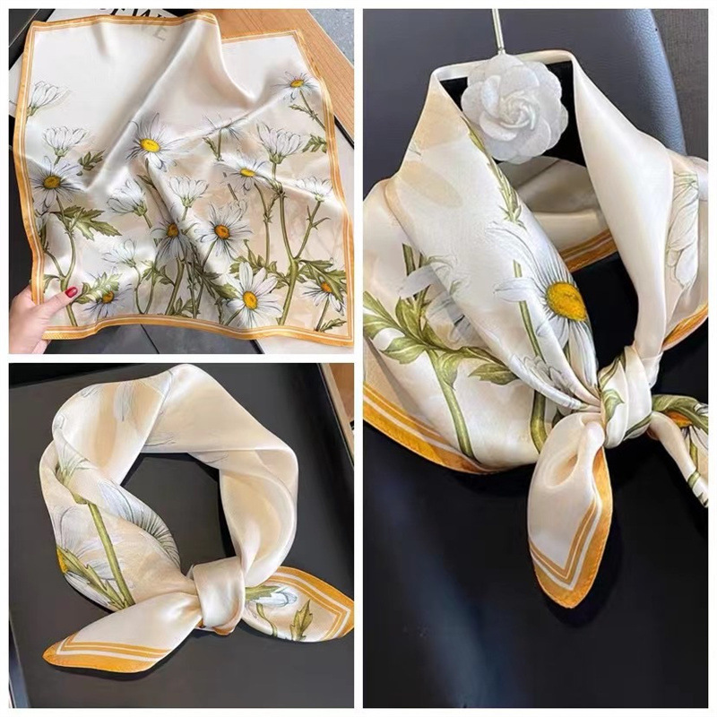 This elegant square silk scarf is crafted from 100% mulberry silk, offering a luxurious and soft feel. Featuring a delicate floral print, it adds a sophisticated touch to any outfit. Its versatile size makes it suitable for various styles, including as a neck scarf, headscarf, or accessory for a bag. Lightweight and breathable, it provides comfort for year-round wear.