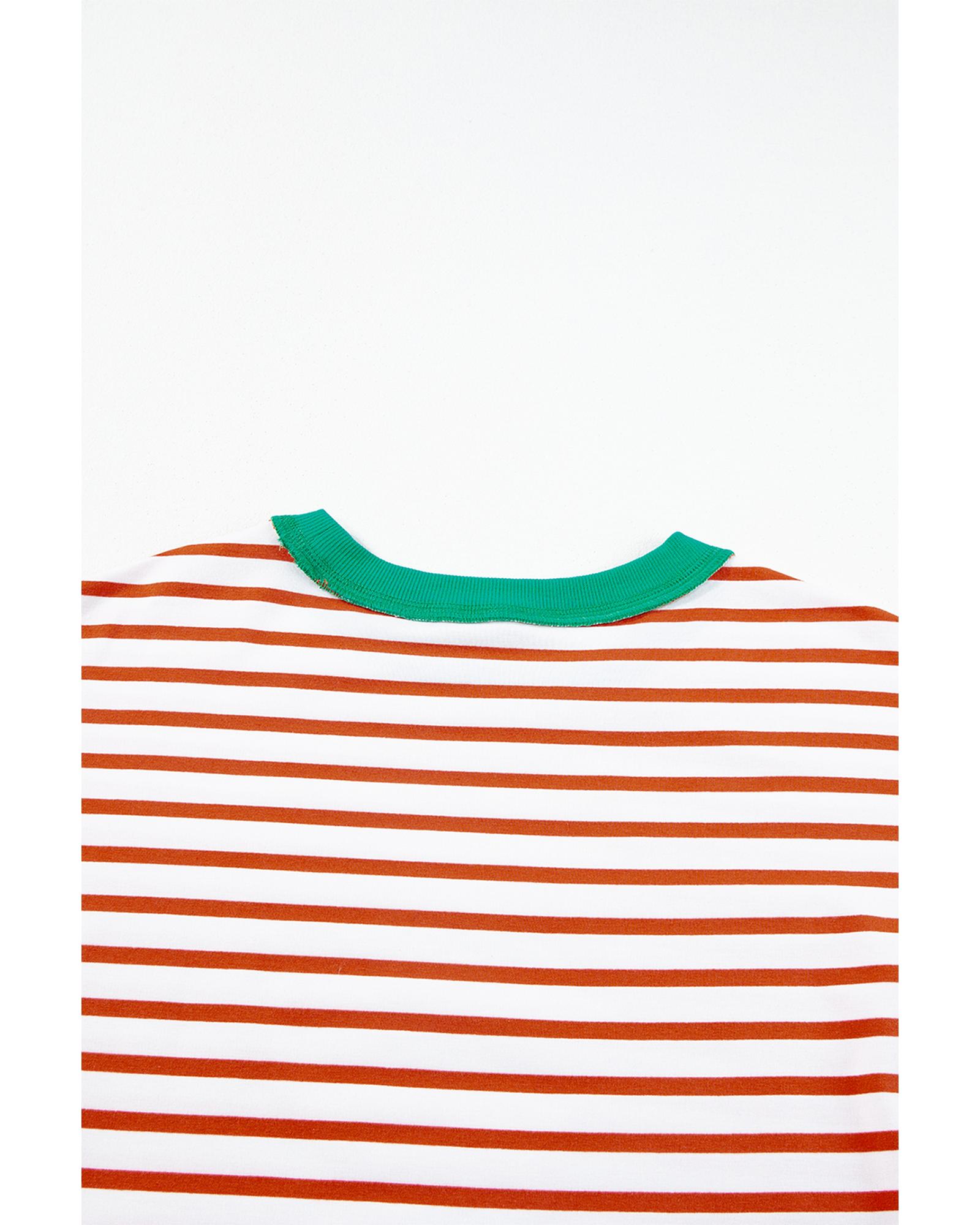 Orange Stripe Oversized Contrast Trim Exposed Seam High Low T Shirt – 2XL