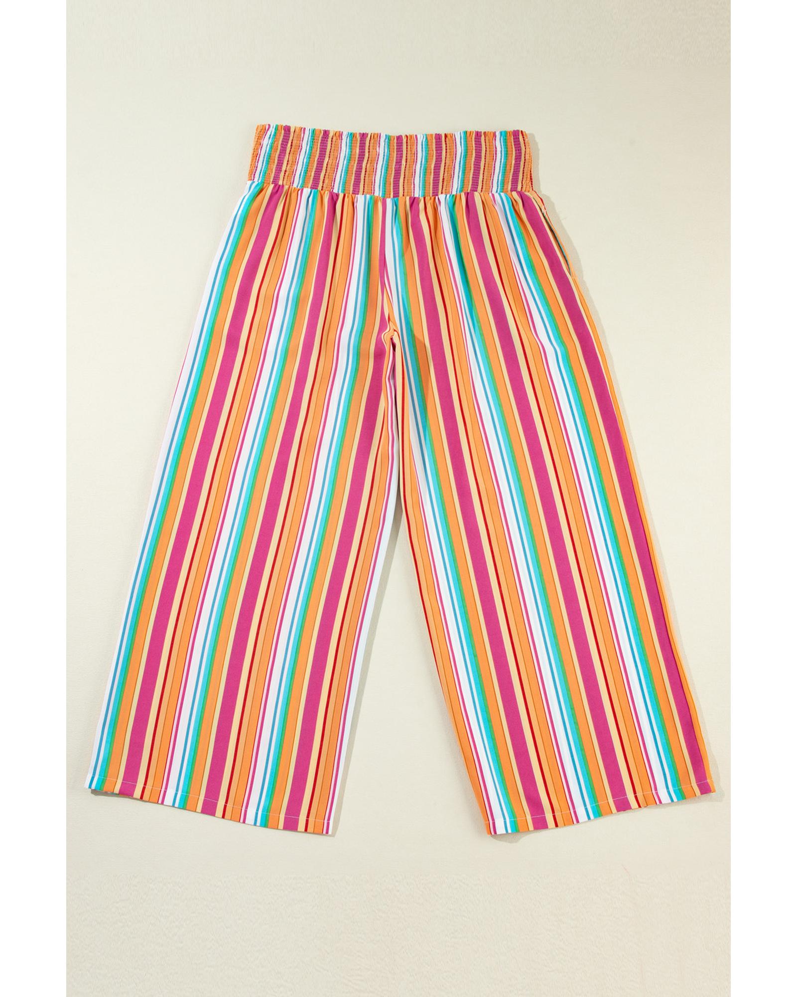 Orange Stripe Plus Size Boho Smocked Waist Loose Pants – 2X