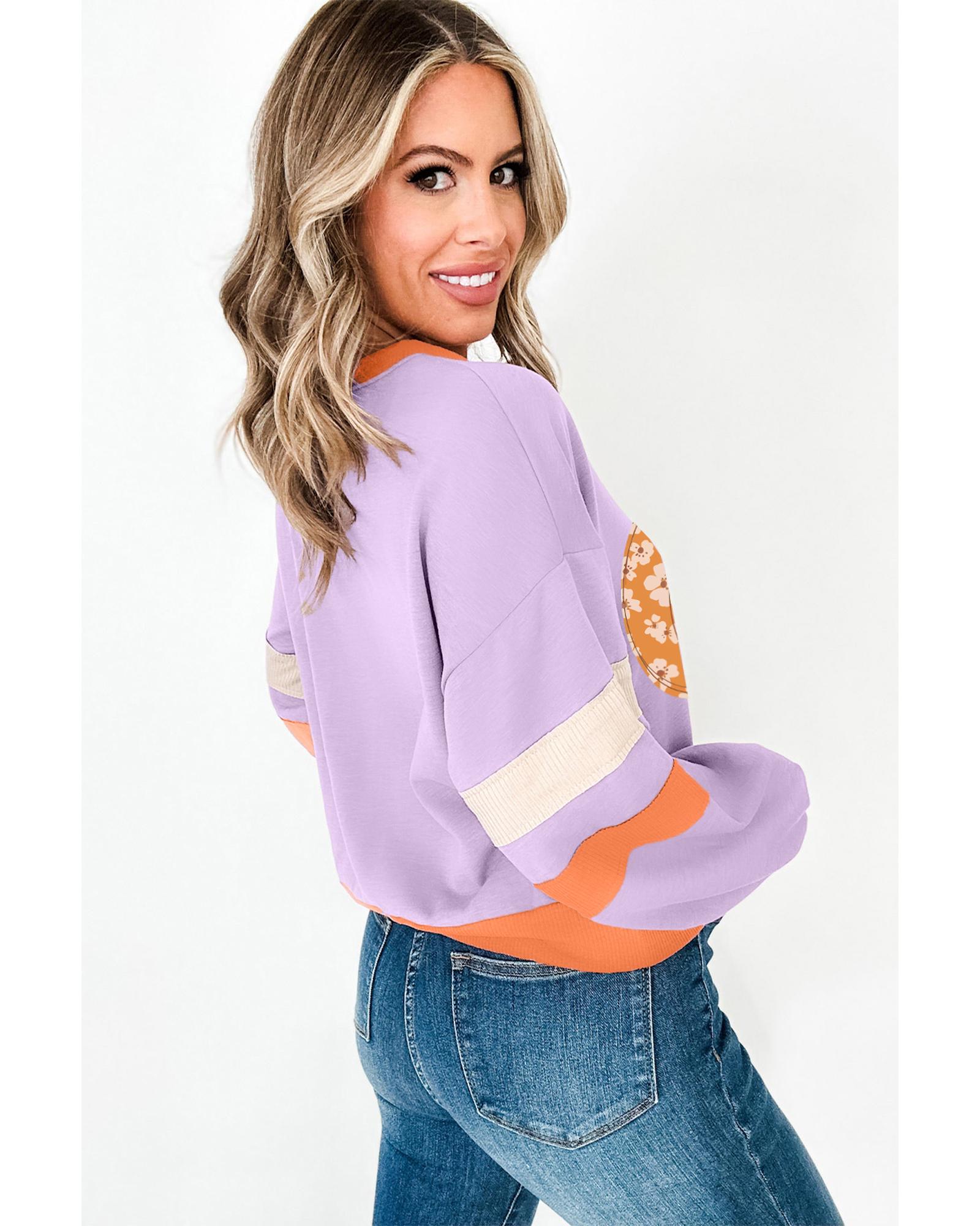 Orchid Bouquet Halloween Floral Pumpkin Color Block V Neck Sweatshirt – XL