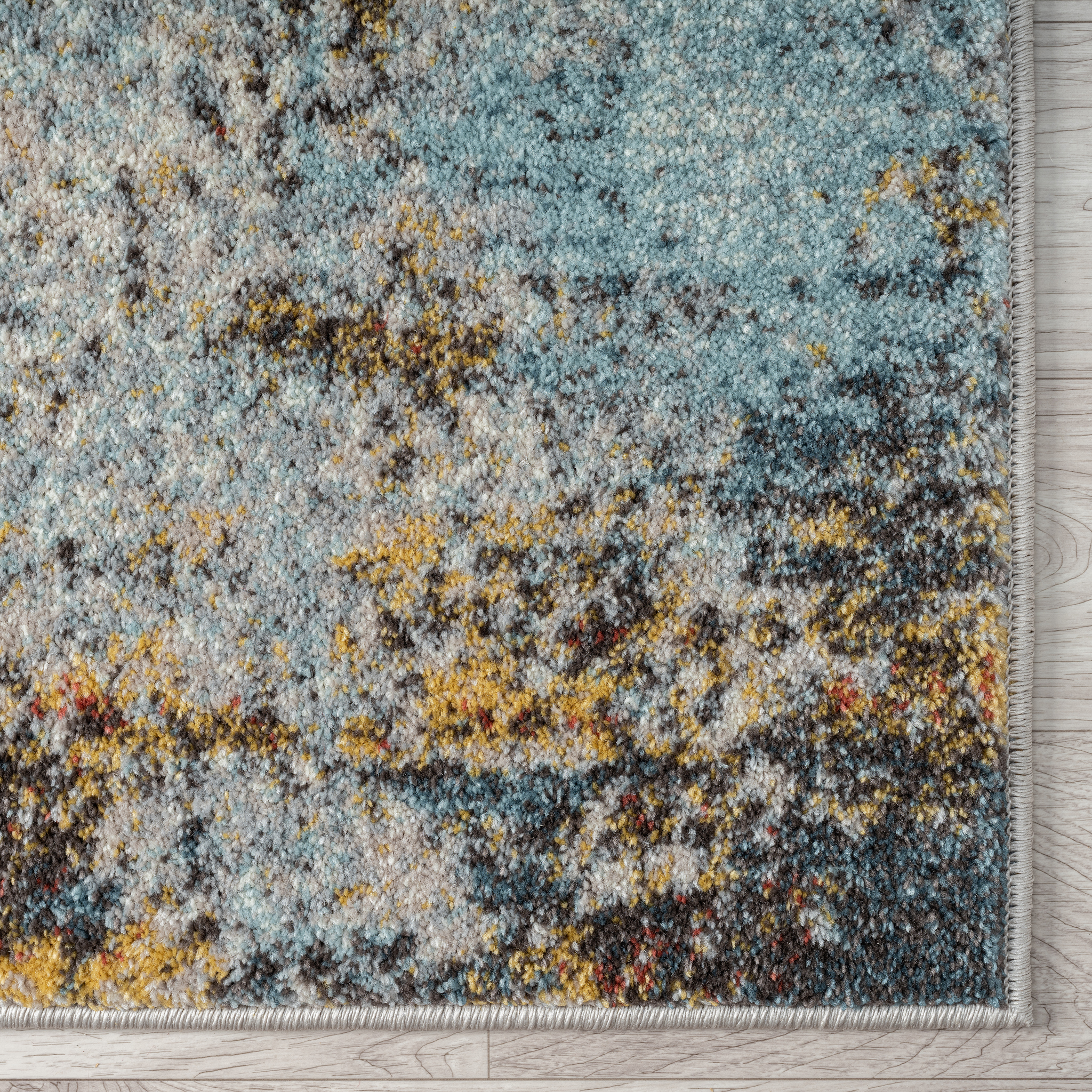 • Abstract multi-color design with distressed details