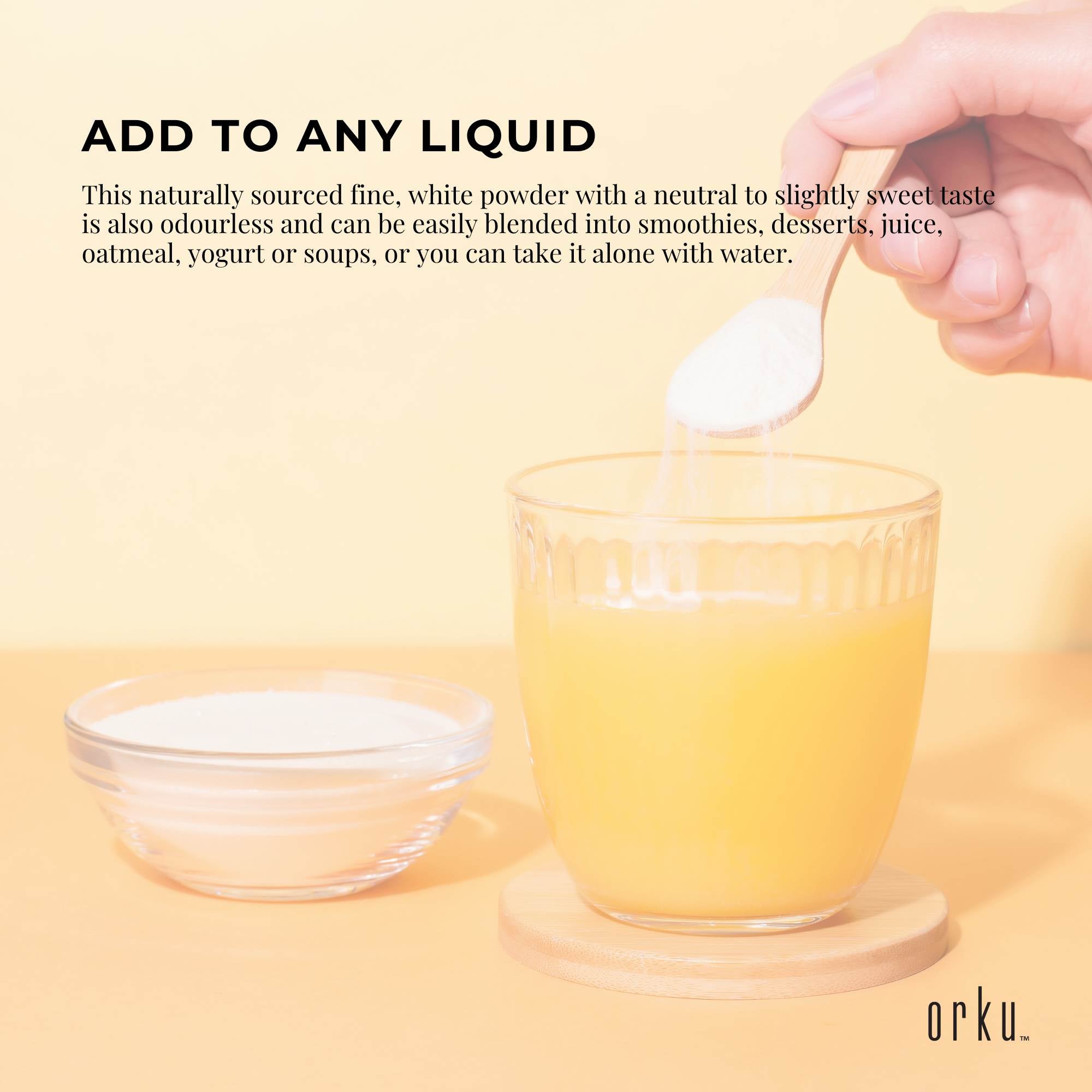 - Odourless and has a neutral to slightly sweet taste, suitable for blending into smoothies, desserts, juice, oatmeal, yogurt, soups, or taken directly with water.