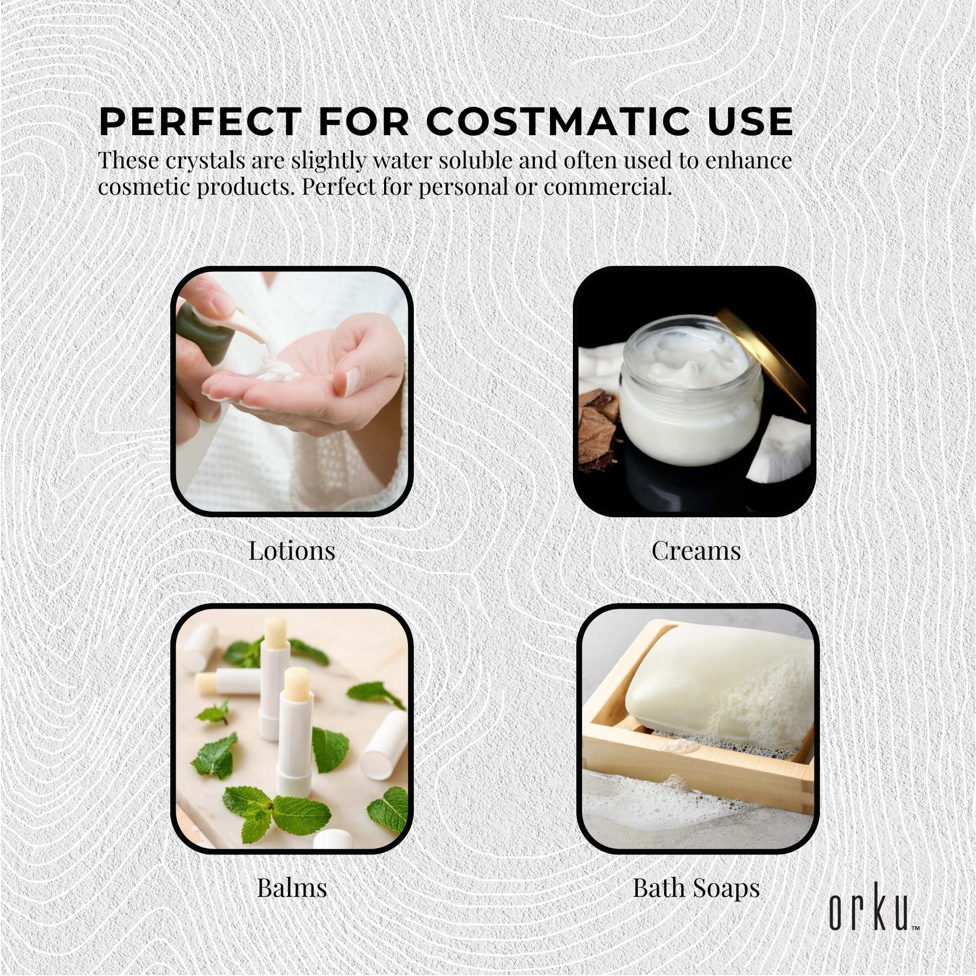 This product features high-quality menthol crystals that are clear, prismatic, and have a pleasant mint aroma. They are suitable for use in various applications including aromatherapy, pharmaceuticals, and food flavoring. The crystals are slightly water-soluble and can be incorporated into cosmetic products such as lotions, creams, and balms.