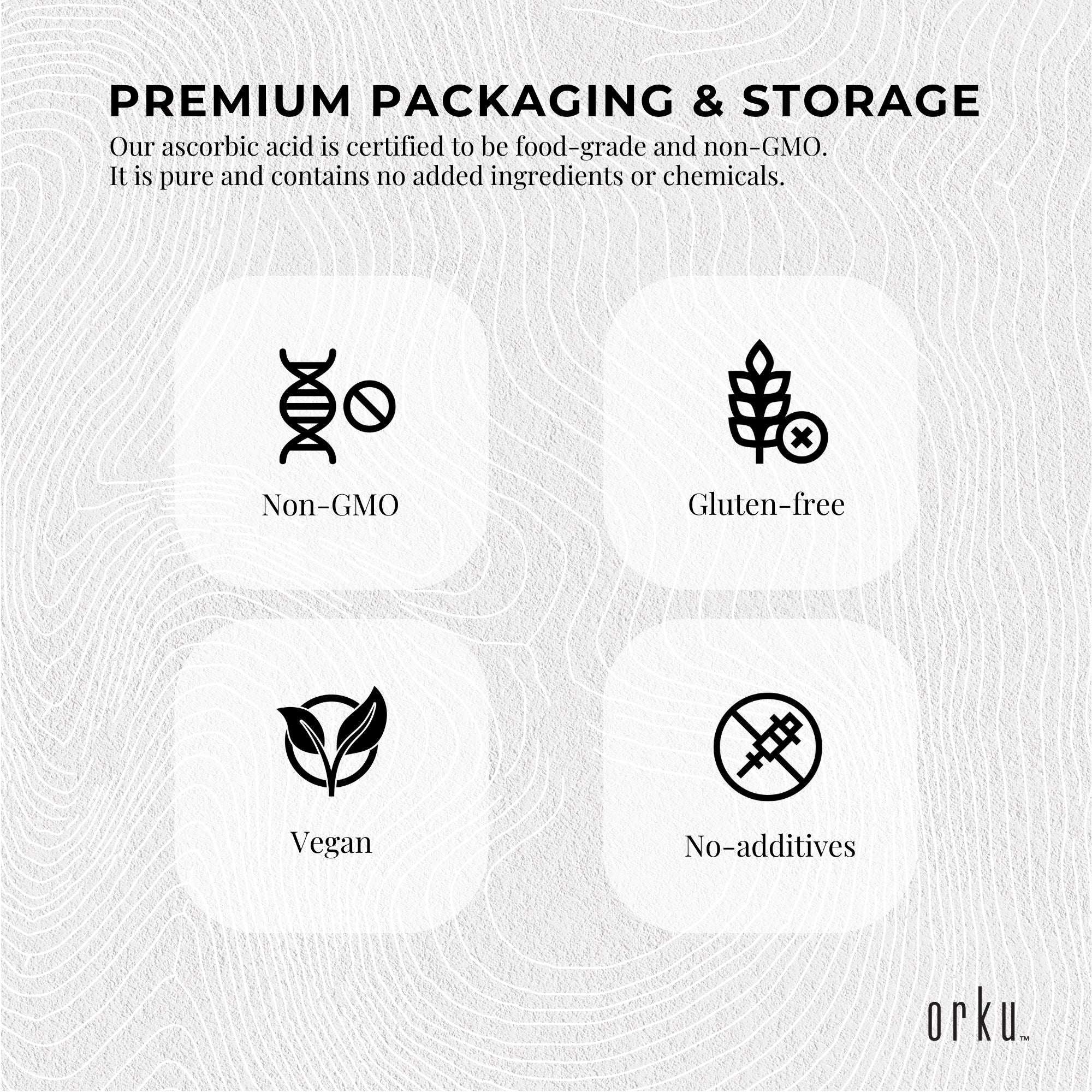 Orku Bulk 10Kg Vitamin C Powder Pure L-Ascorbic Acid – USP Grade Non-GMO
