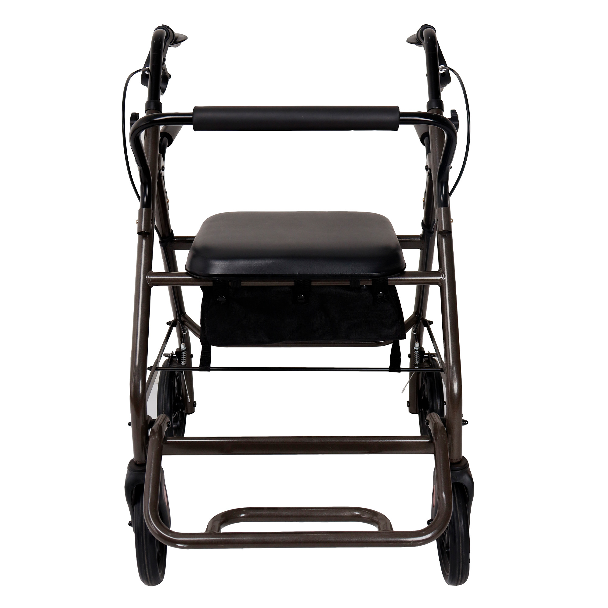 This foldable steel frame rollator walker provides a reliable mobility aid designed for ease of use and convenience. Its sturdy construction and compact design make it suitable for various environments, offering comfort and support for users of different heights. The padded seat with storage, adjustable handles, and smooth-rolling wheels enhance the overall experience, promoting independence and safety during movement.