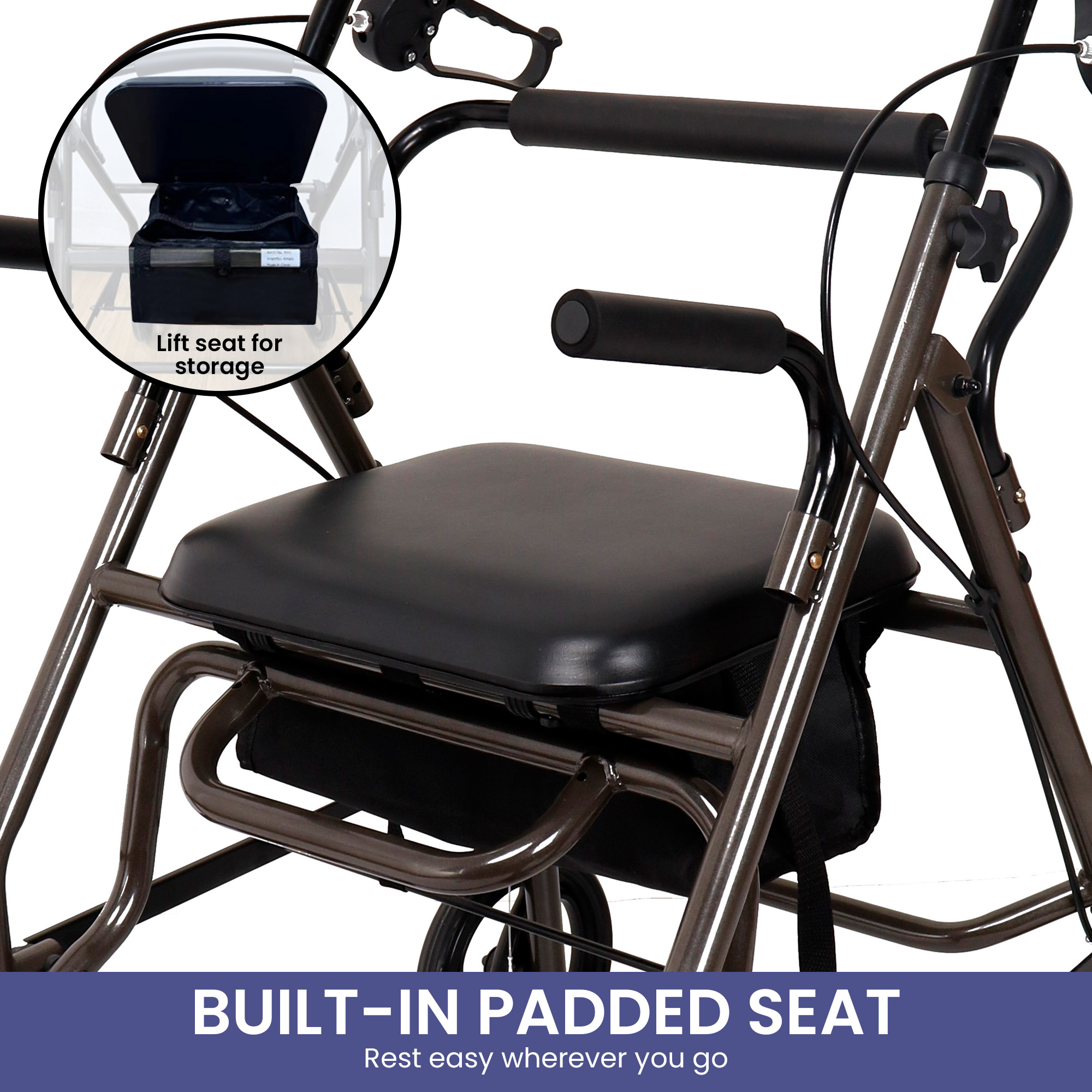 Orthonica Foldable Steel Frame Rollator Walker Lightweight Mobility Aid in Grey