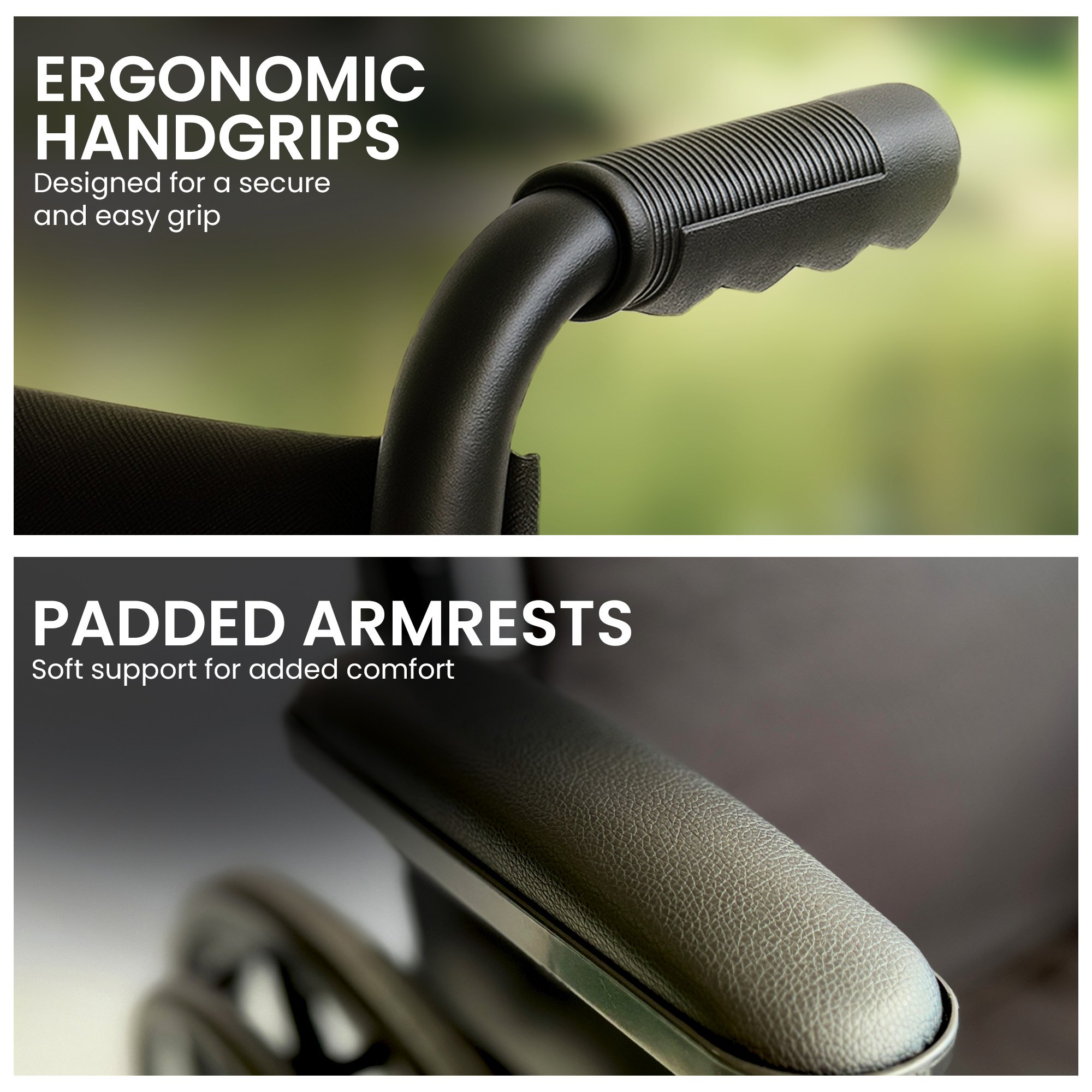 Orthonica New Steel Wheelchair In Black Foldable Lightweight Disability Aid Portable Heavy-duty 24-inch Adjustable Footrest Steel Frame