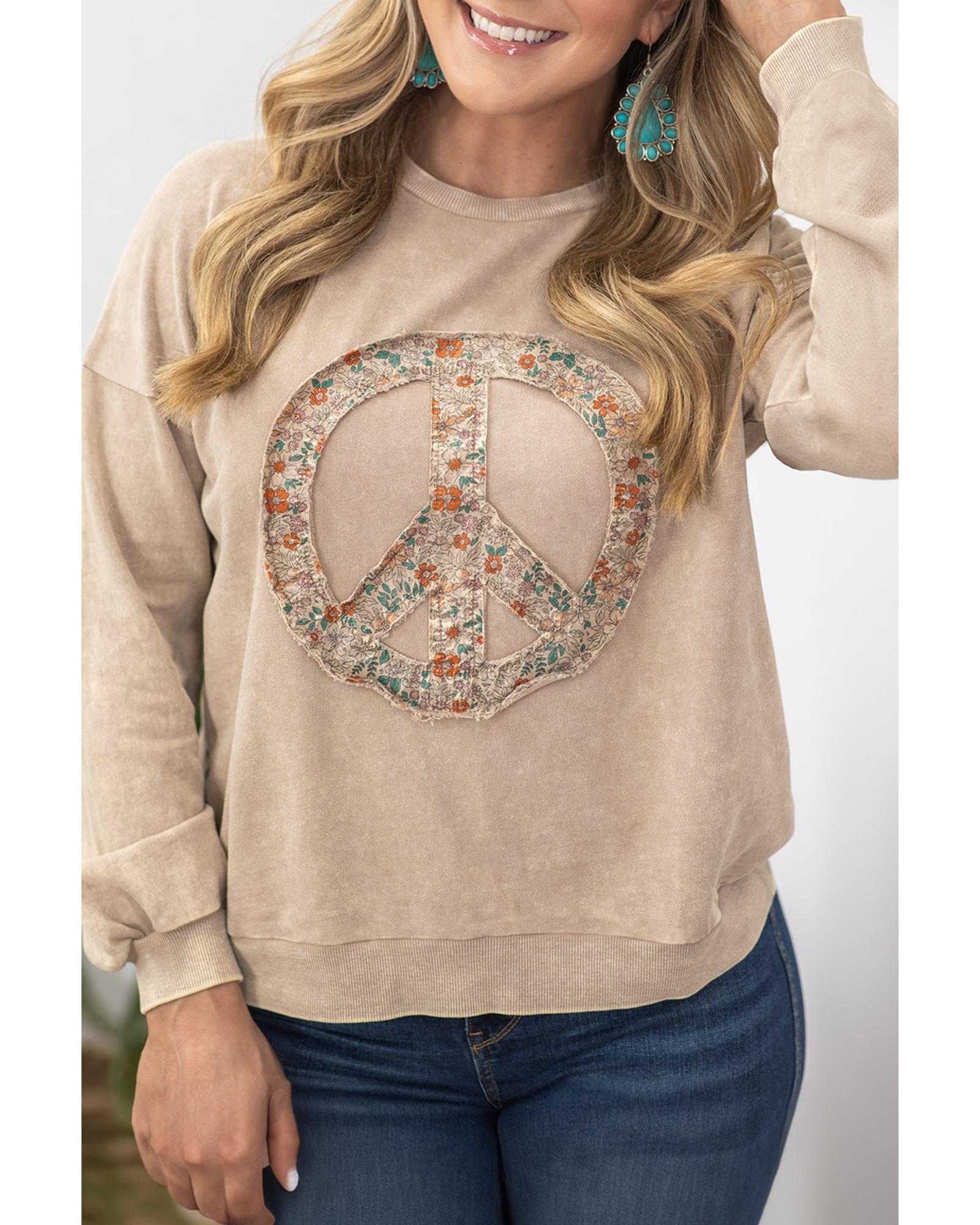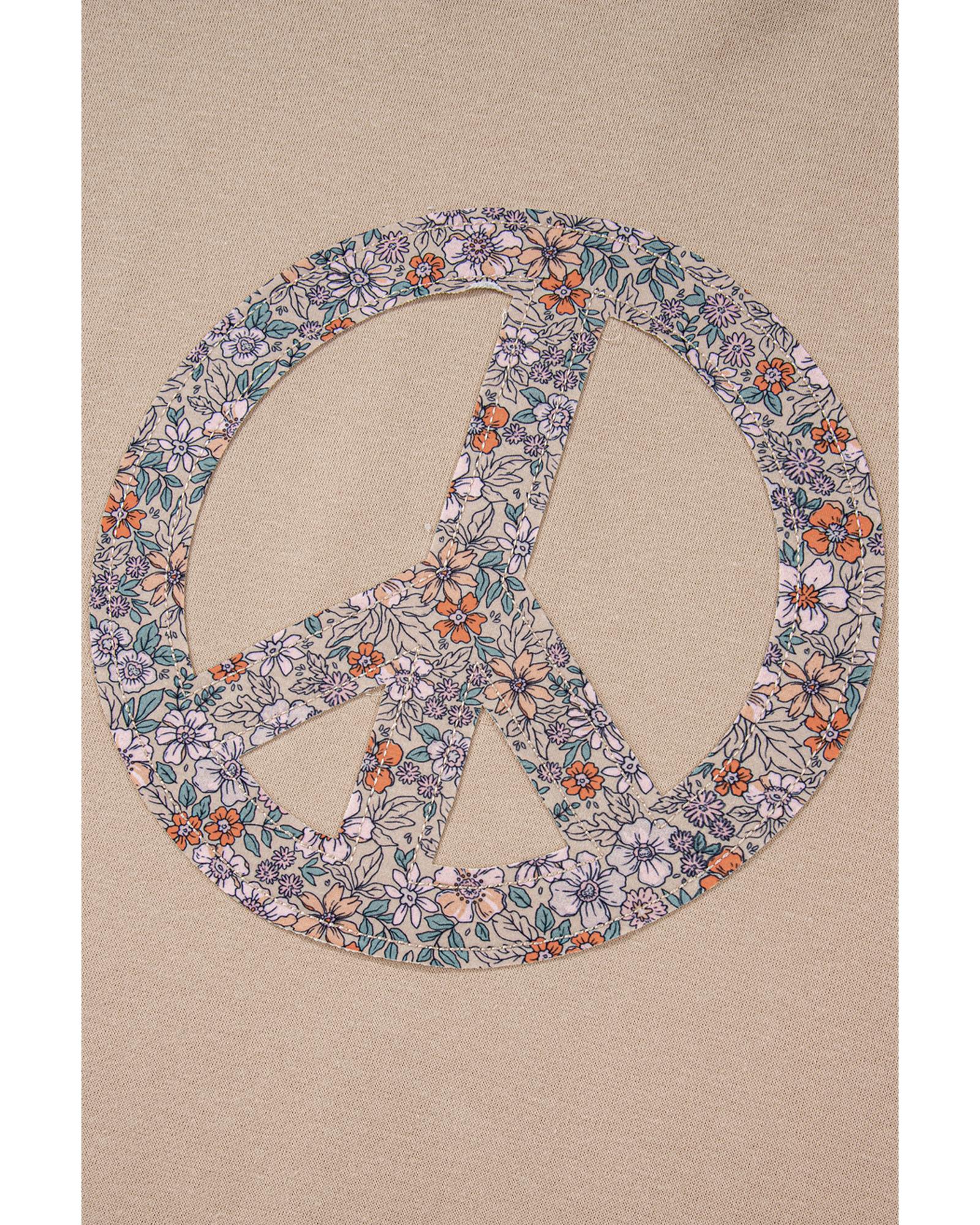 Pale Khaki Floral Peace Sign Graphic Washed Terry Plus Size Sweatshirt – 2X