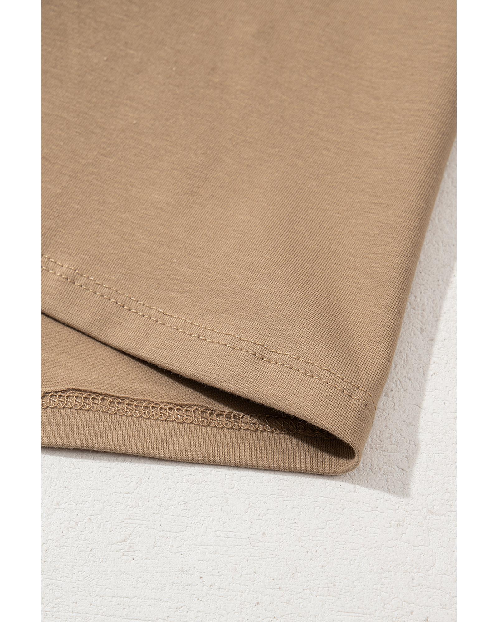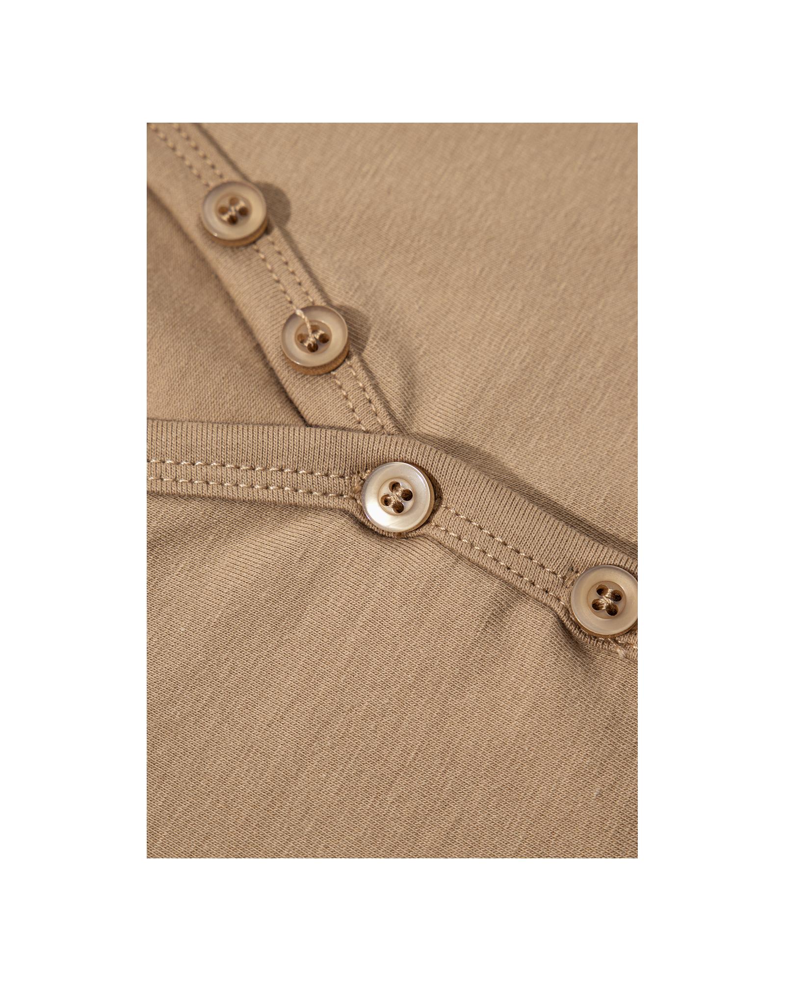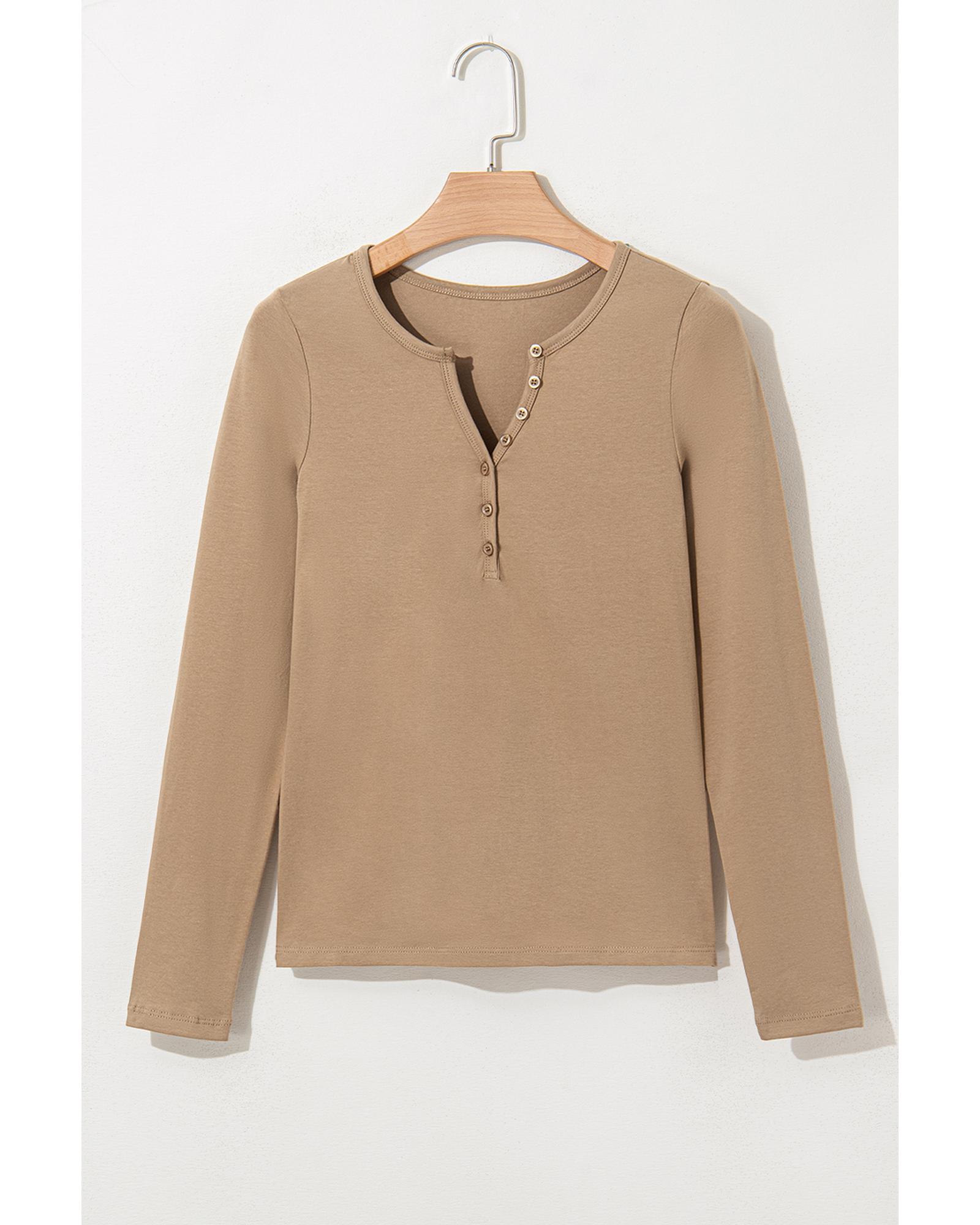Pale Khaki Long Sleeve Buttons V Neck Slim Fit Top – L