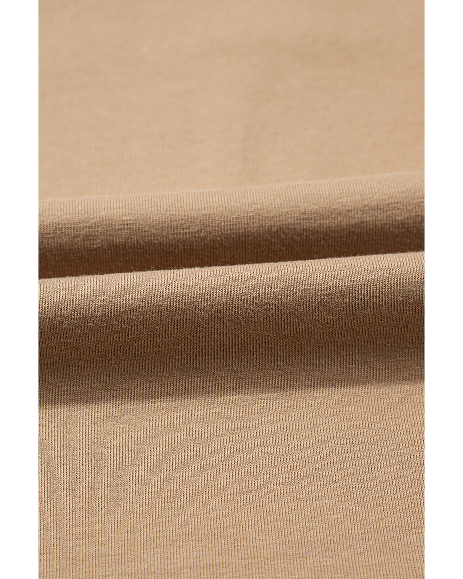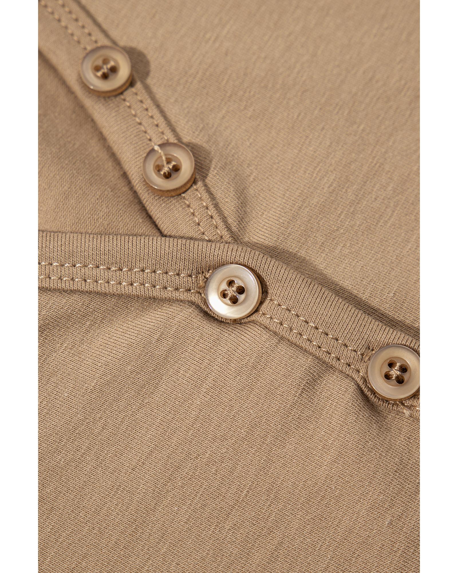 Pale Khaki Long Sleeve Buttons V Neck Slim Fit Top – M