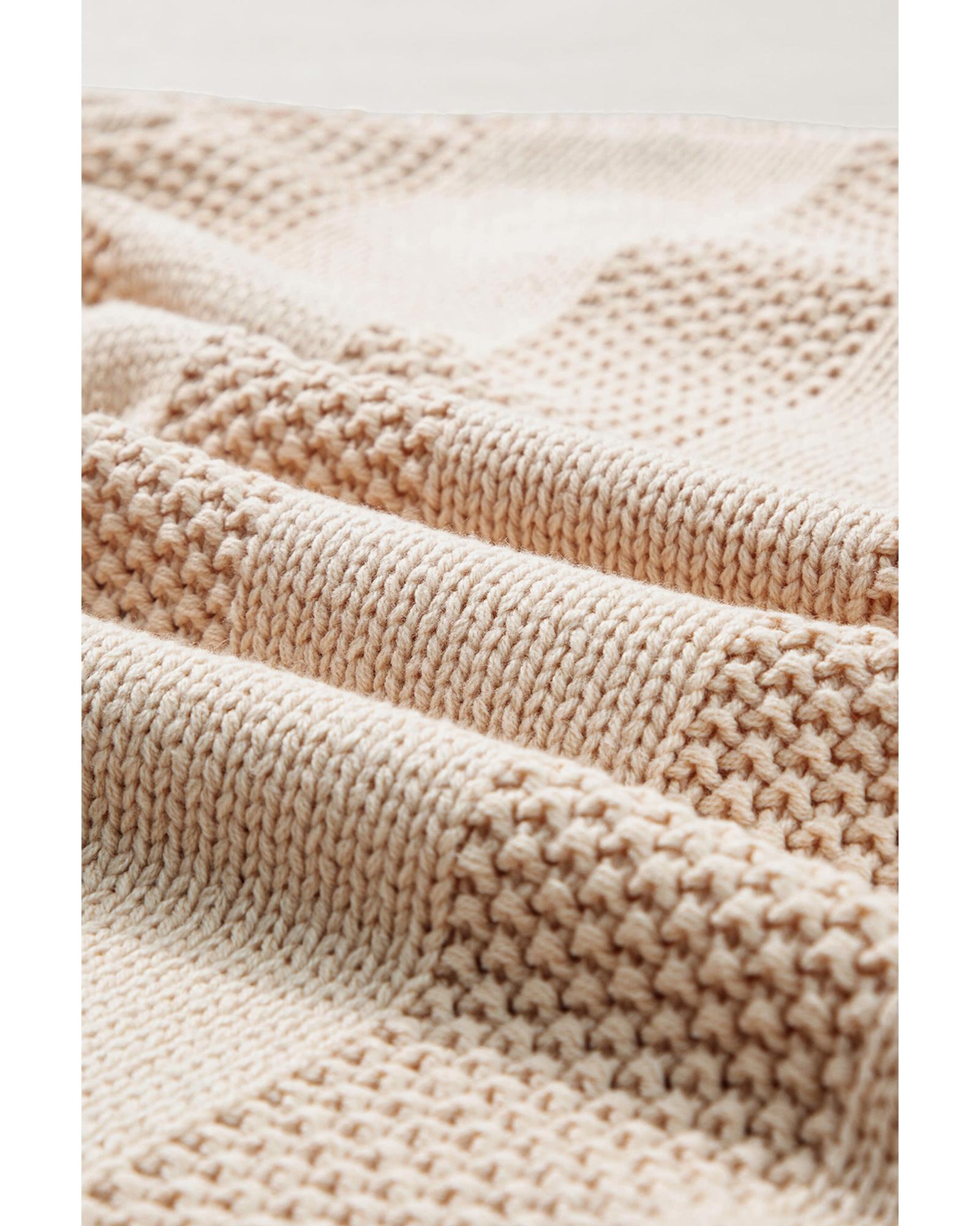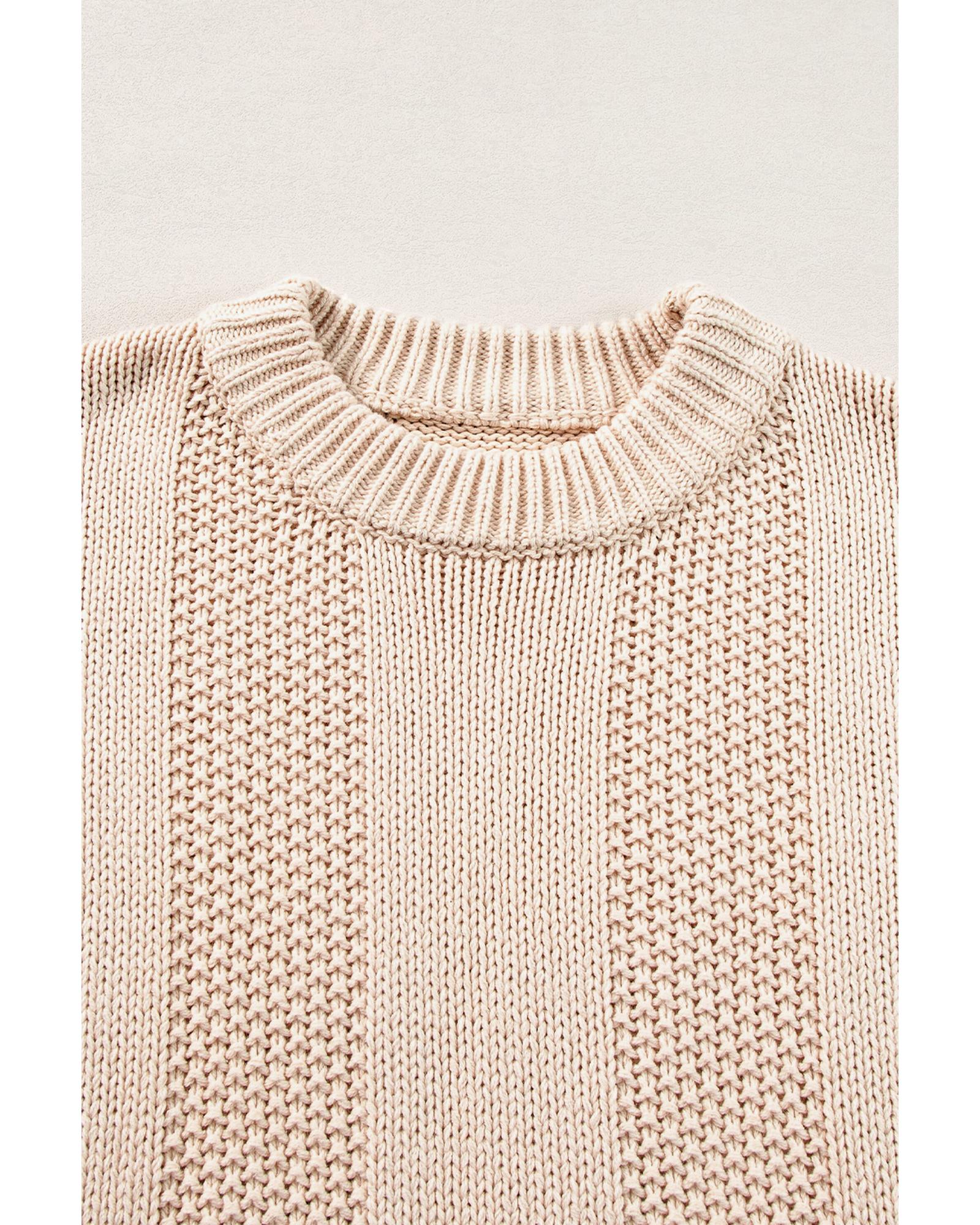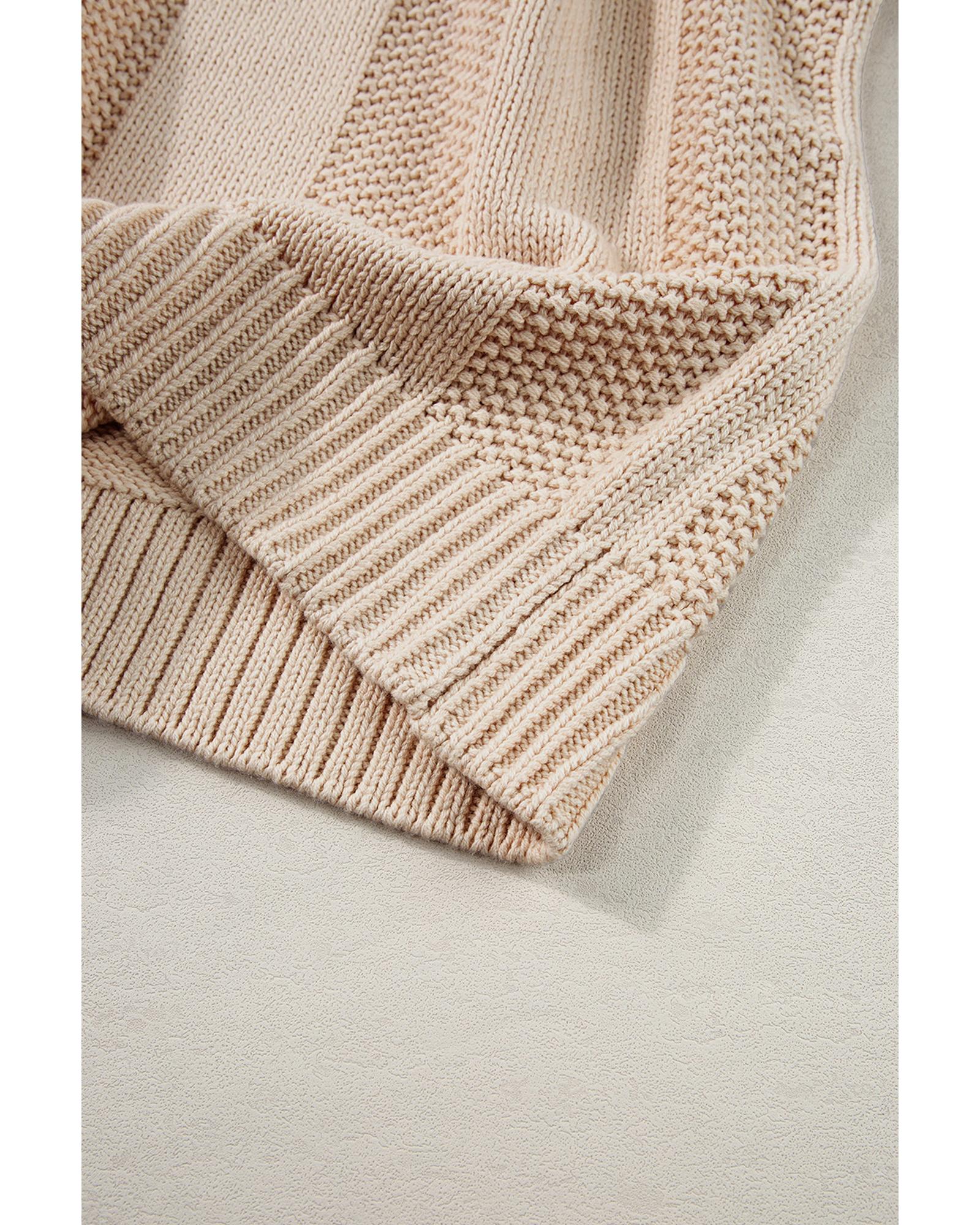 Pale Khaki Solid Color Cable Knit Ribbed Loose Sweater – XL
