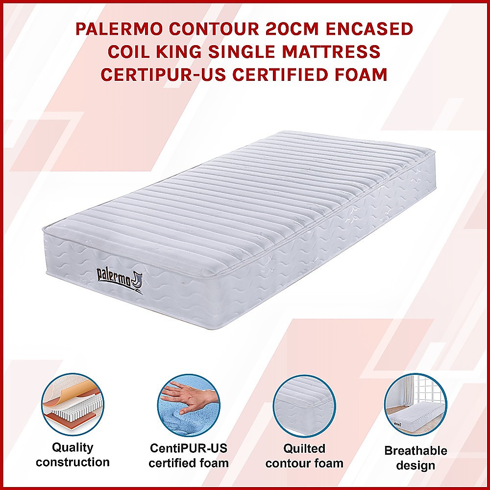 Palermo Contour 20cm Encased Coil King Single Mattress CertiPUR-US Certified Foam
