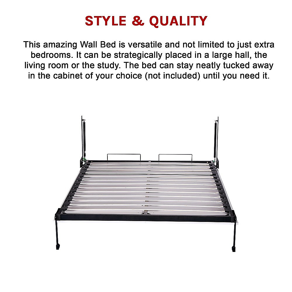 This wall bed mechanism hardware kit allows you to convert a spare room into a functional guest bedroom quickly and easily. It is designed to be versatile and can be installed in various spaces such as living rooms, halls, or studies. The kit provides a space-saving solution by allowing the bed to be neatly tucked away when not in use, freeing up valuable room space.