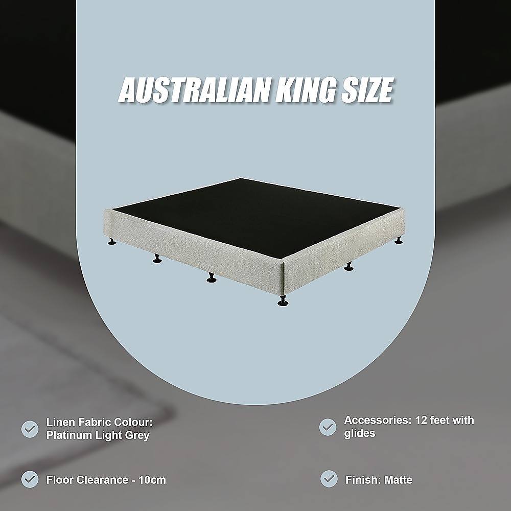 Palermo King Ensemble Bed Base Platinum Light Grey Linen Fabric