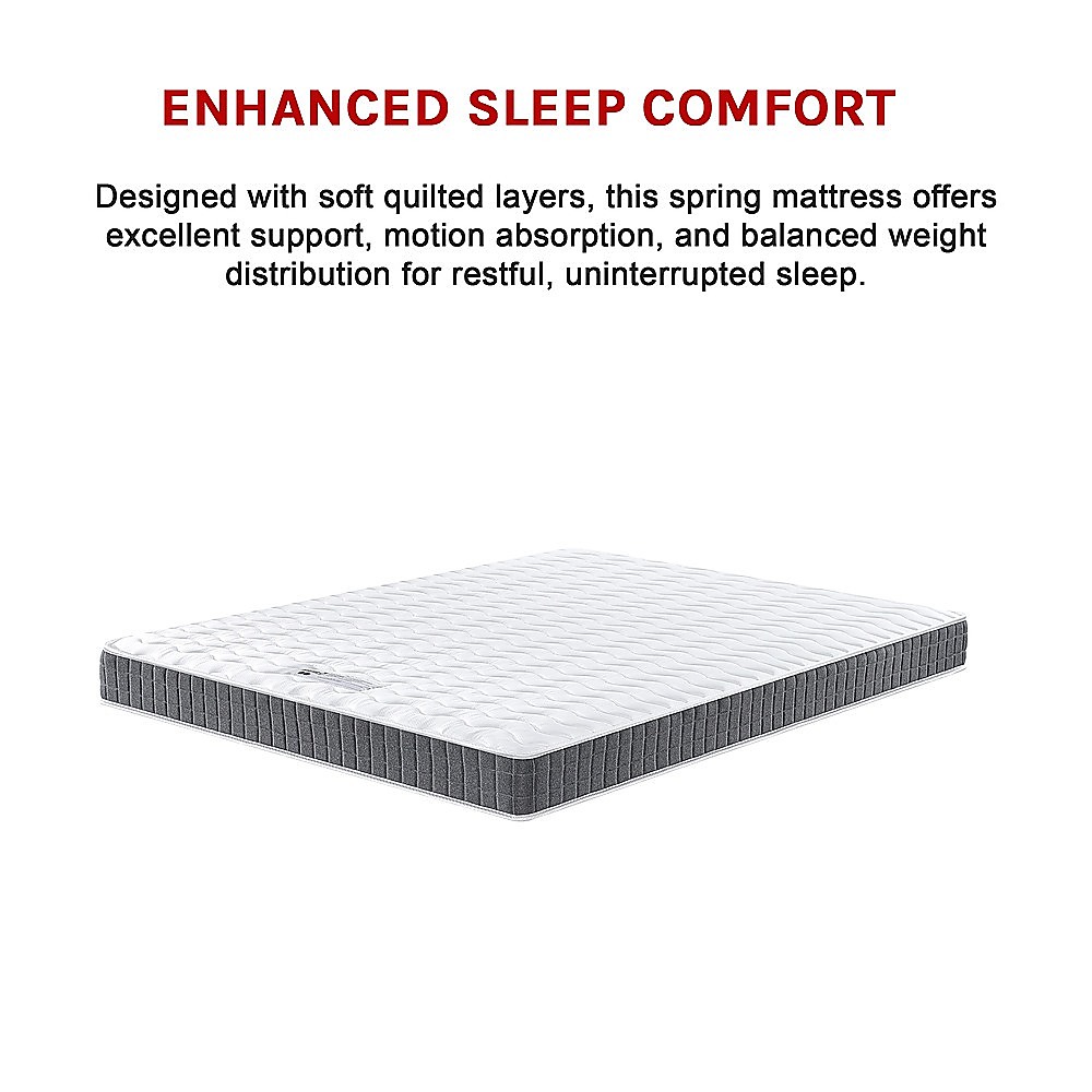 This queen-sized spring mattress offers a comfortable and supportive sleeping surface suitable for various rooms in your home. Crafted with multiple support layers and a durable spring core, it provides excellent movement absorption, even weight distribution, and reliable back support. The soft quilted surface enhances comfort, making it ideal for everyday use and ensuring restful sleep for you and your family.