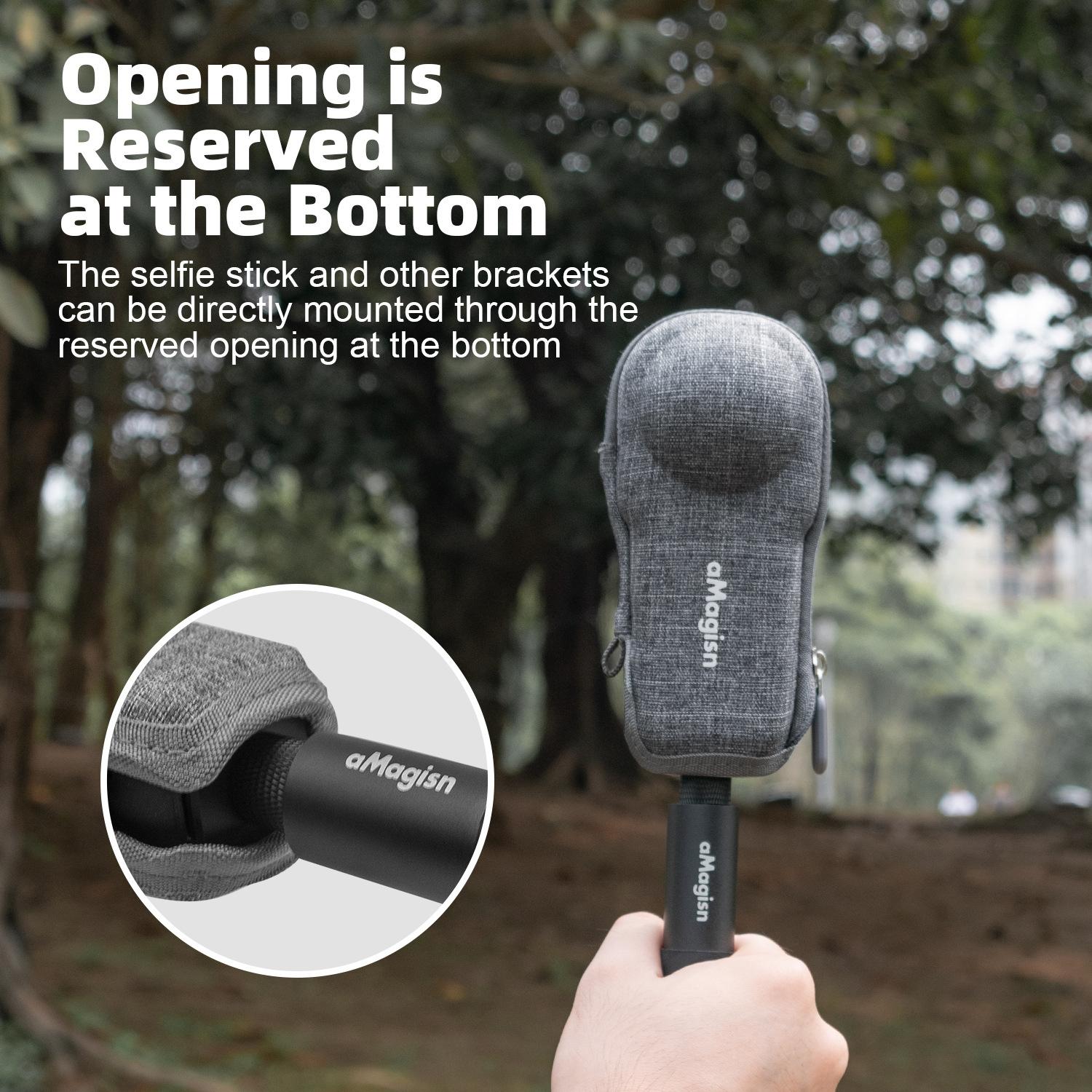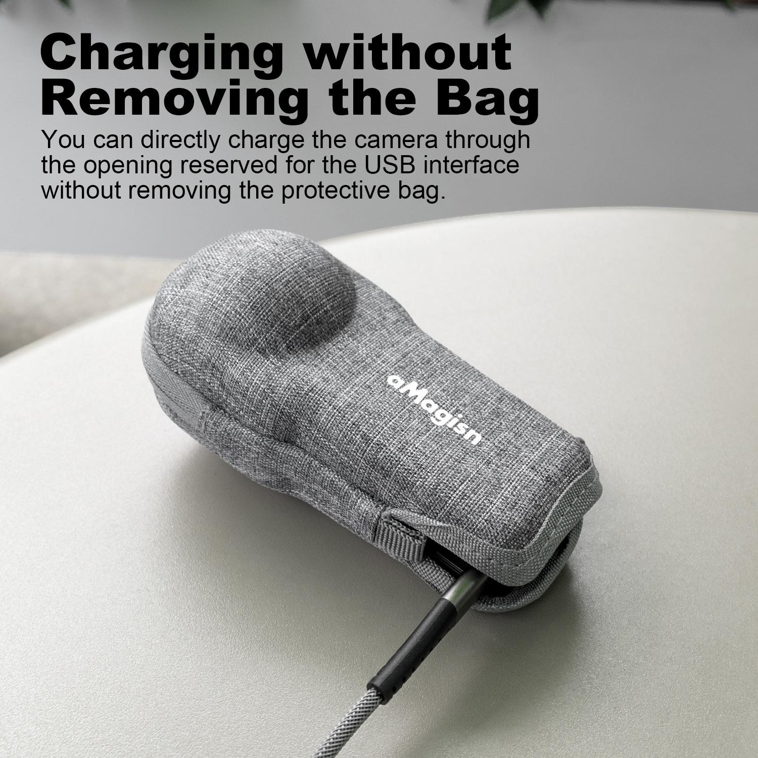 This panoramic body bag is designed for sports cameras, providing a secure and convenient storage solution. It features a fully fitted mold that aligns with the camera’s shape, making it easy to carry and store. The bag includes a USB cover with an opening design, allowing for easy access to charging ports. It also offers reserved space for a lens protector and is lined with soft velvet to prevent damage from shocks and scratches. The surface is made of durable woven fabric that is wear-resistant, water-resistant, and resistant to snow and scratches. The bottom of the bag can be directly connected to selfie sticks and other camera brackets. Made from EVA and woven fabric, the bag is lightweight and portable. Its dimensions are approximately 14.5 x 7 x 7.3 centimeters, and it weighs about 56 grams.