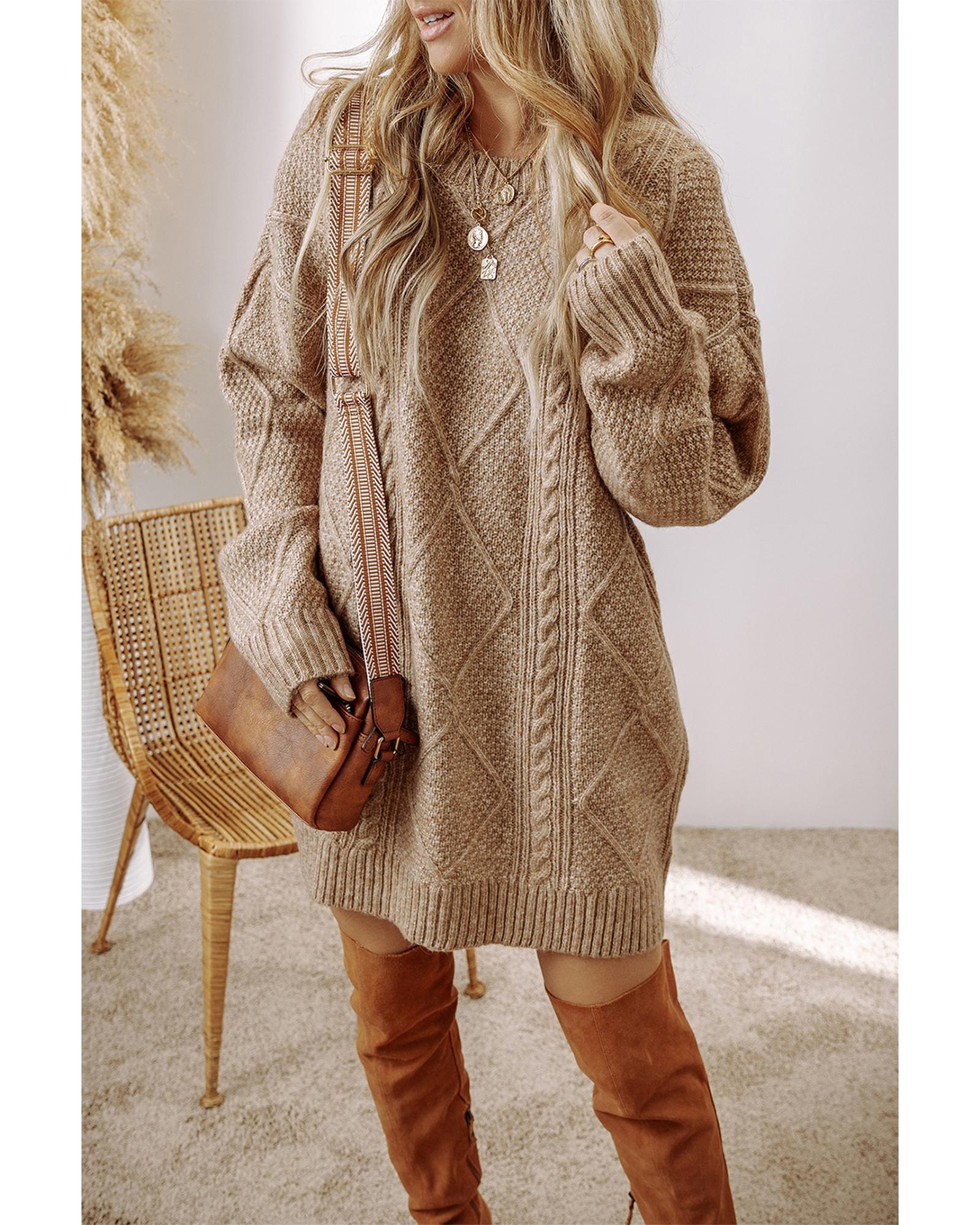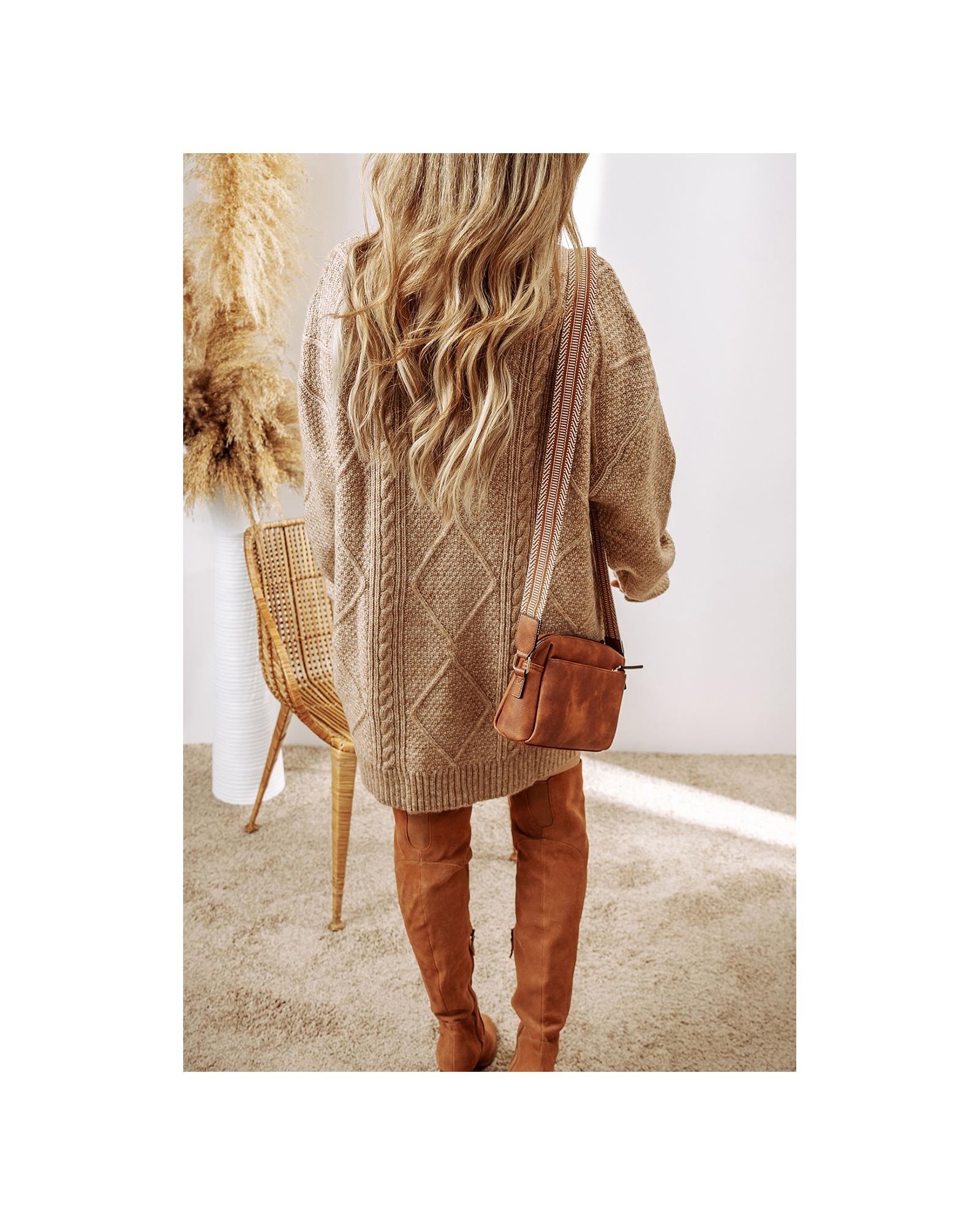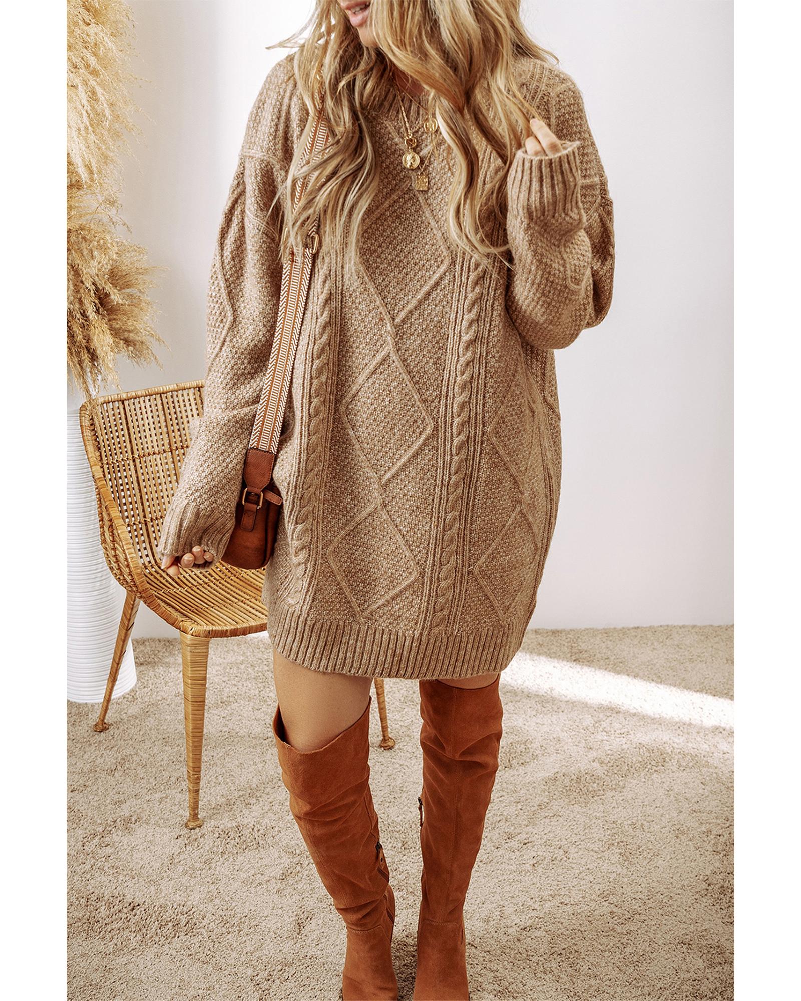 This sweater dress features a cozy cable knit design combined with a relaxed fit, making it a versatile addition to any wardrobe. Its drop shoulder silhouette adds a casual yet stylish touch, suitable for various occasions. Crafted from high-quality polyester, it offers comfort and durability.