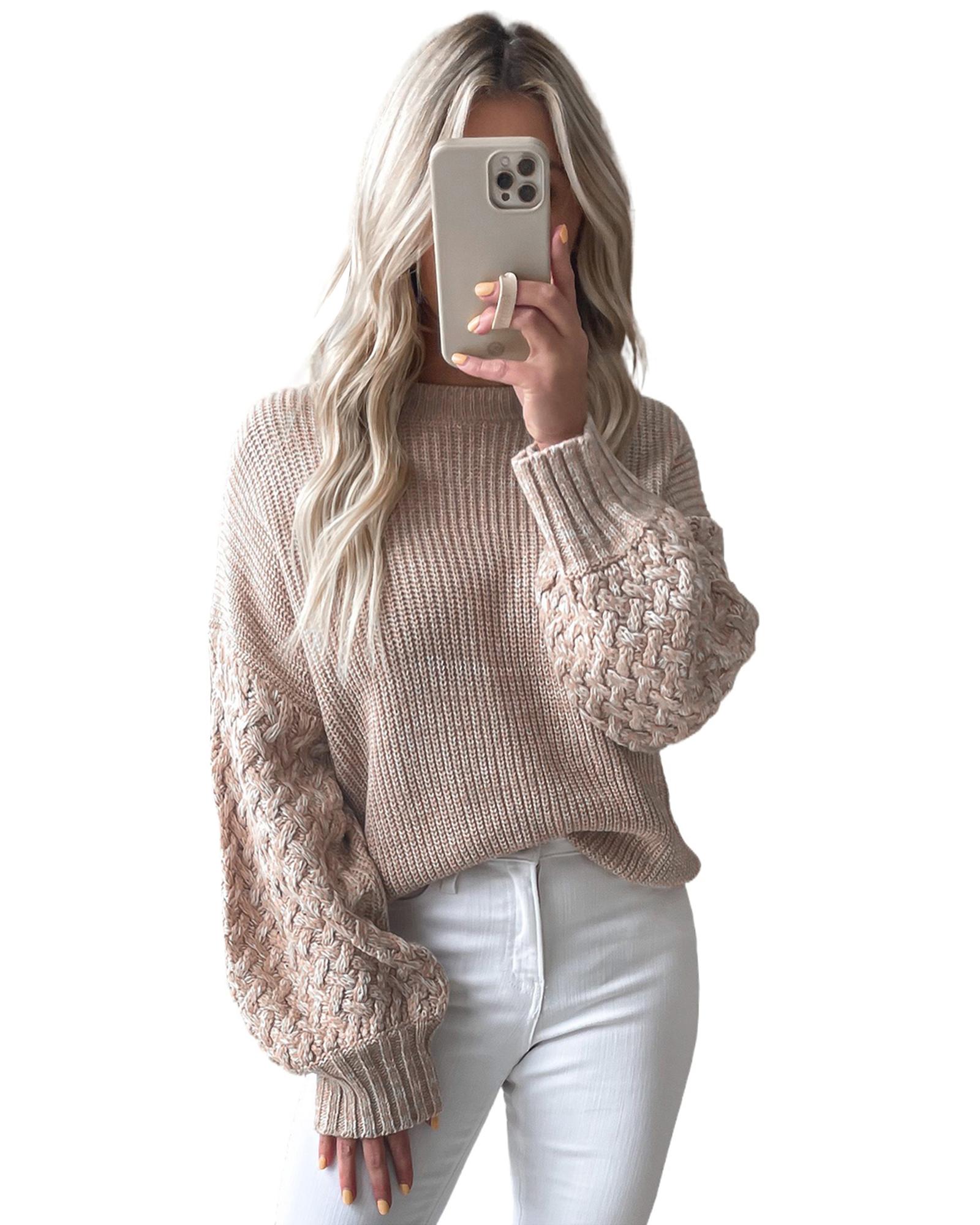 Parchment Cable Knit Sleeve Drop Shoulder Sweater – XL