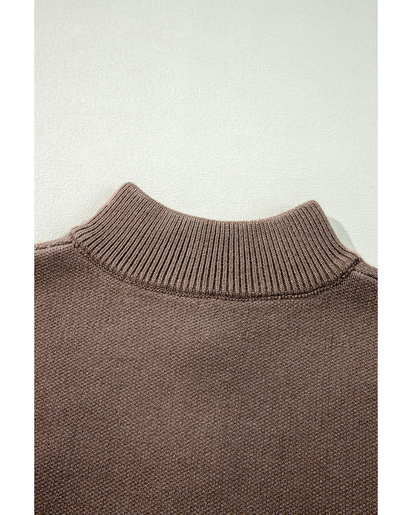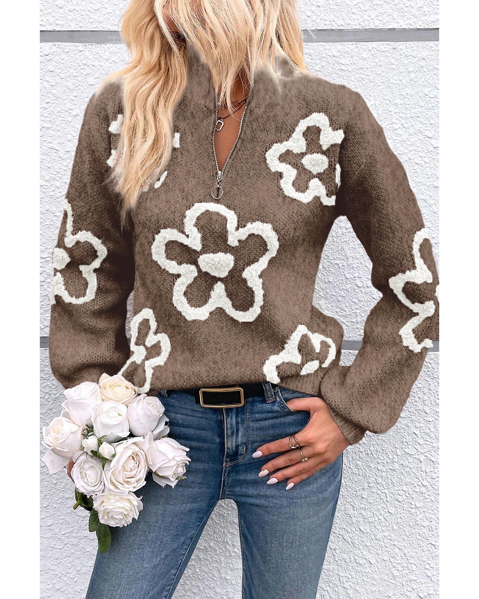 This sweater features a stylish and elegant knitted design with a contrasting flower pattern, making it a versatile addition to casual outfits. It combines comfort and fashion with a stand neck and half zipper for a chic look and flexibility.