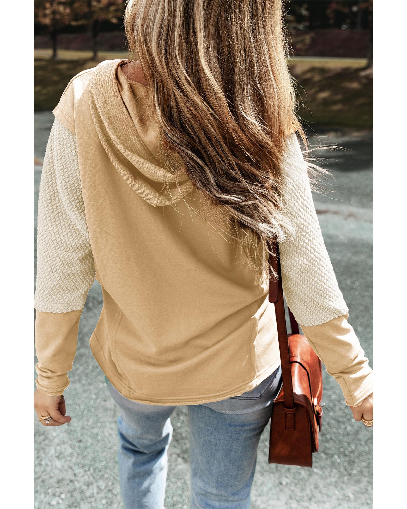 Light French Beige Colorblock Patchwork Half Zip Oversized Sherpa Hoodie - M Original price was: $83.99.Current price is: $45.99.