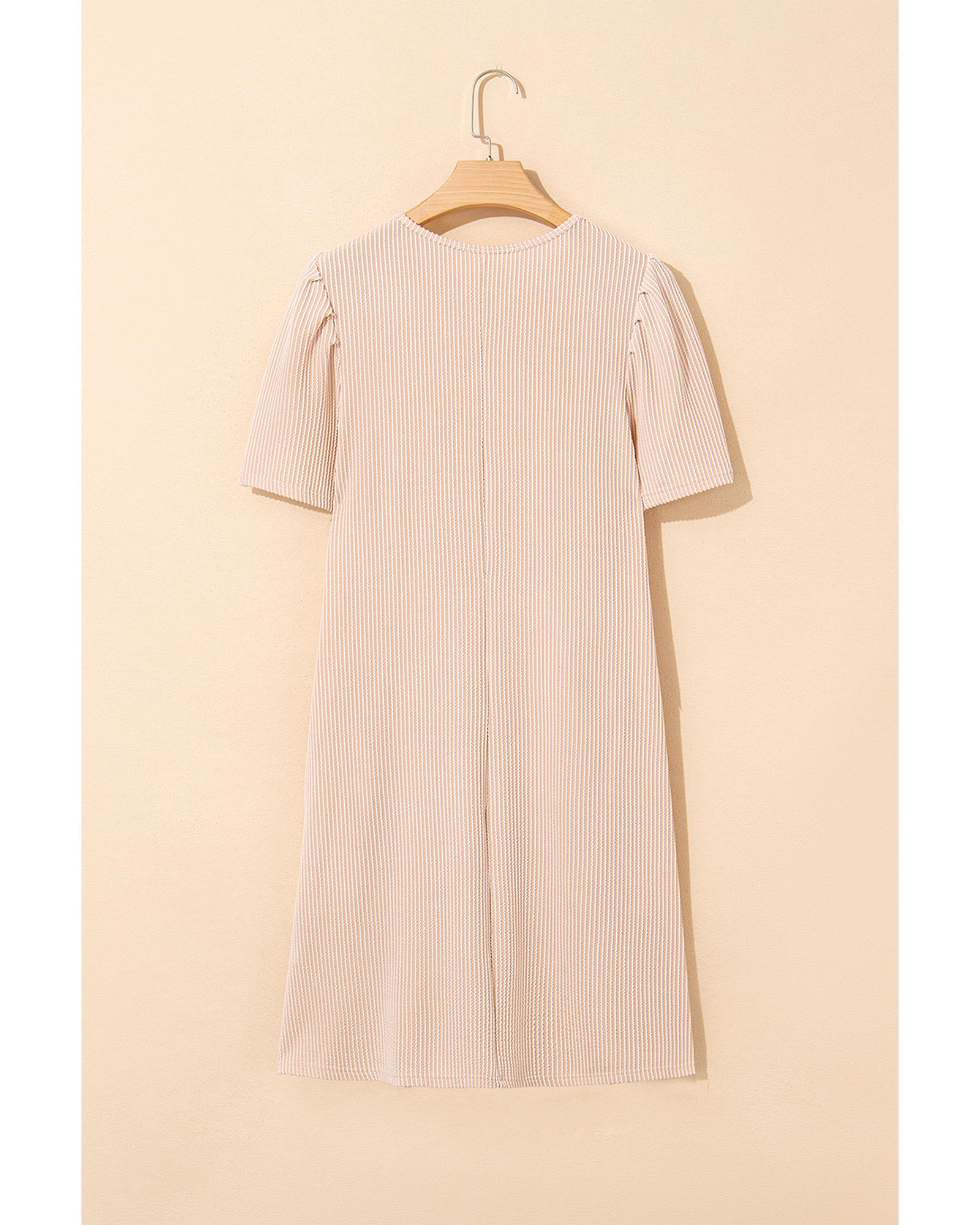 Parchment Corded Knit Crew Neck Puff Sleeve Shift Mini Dress – M