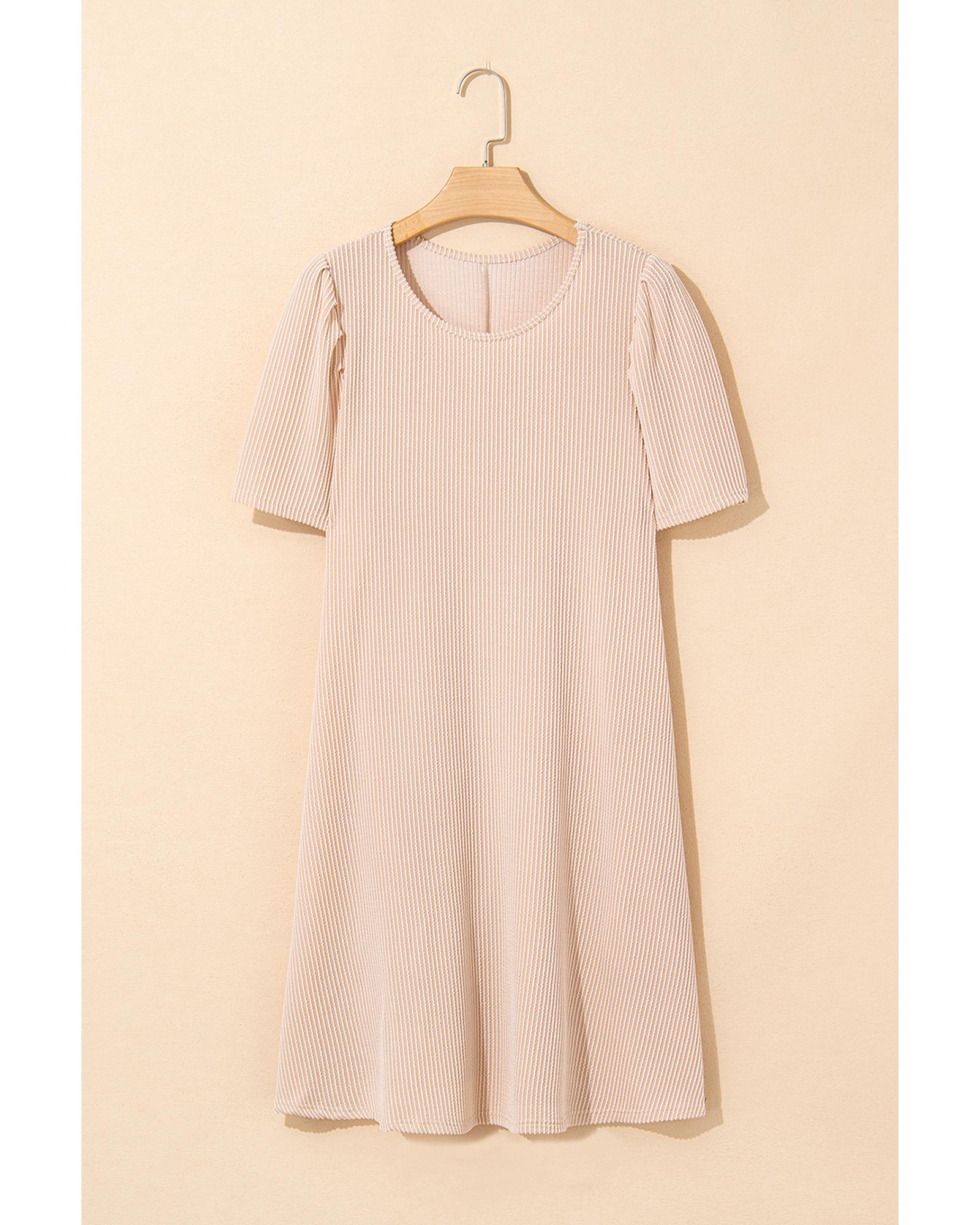 Parchment Corded Knit Crew Neck Puff Sleeve Shift Mini Dress – S