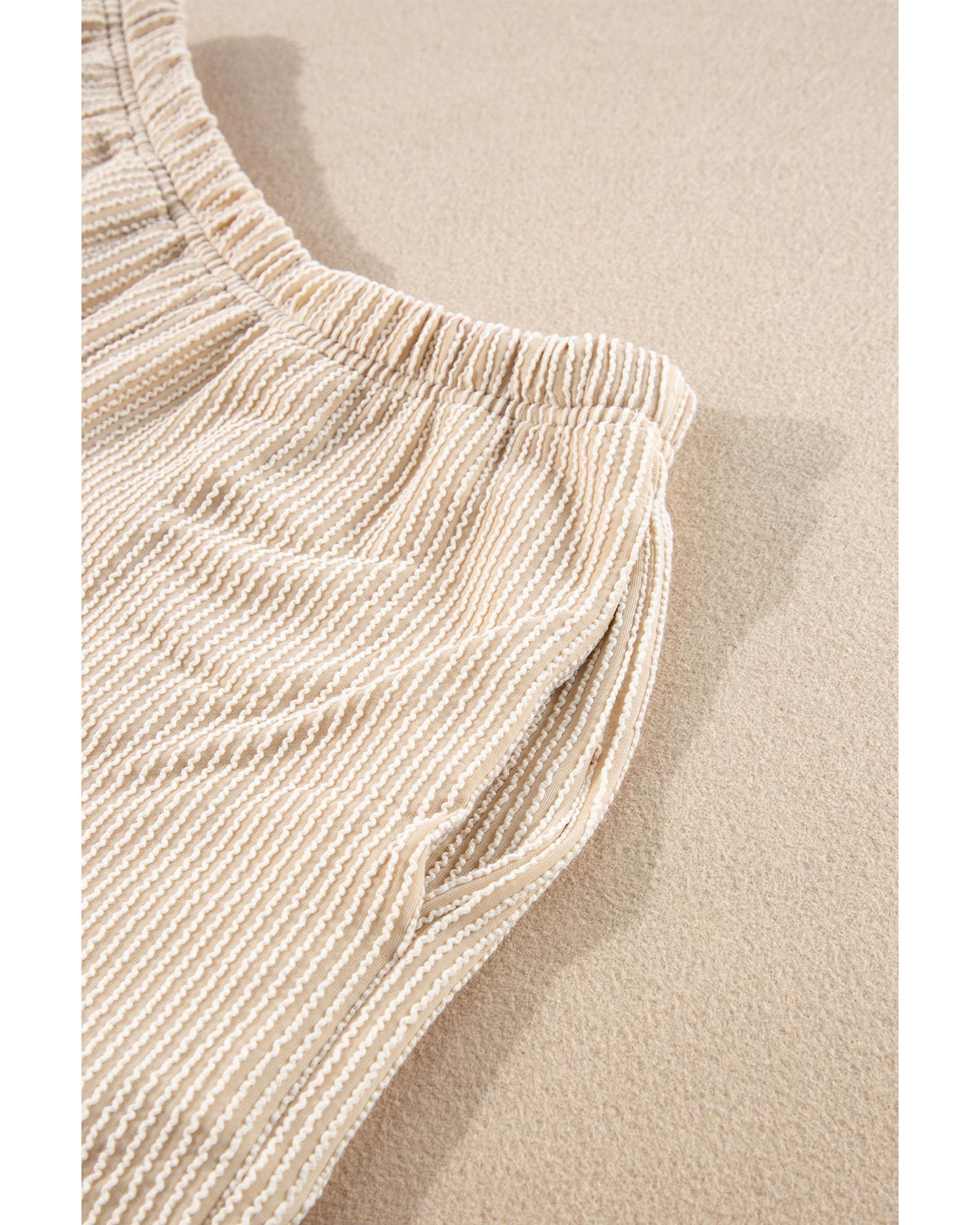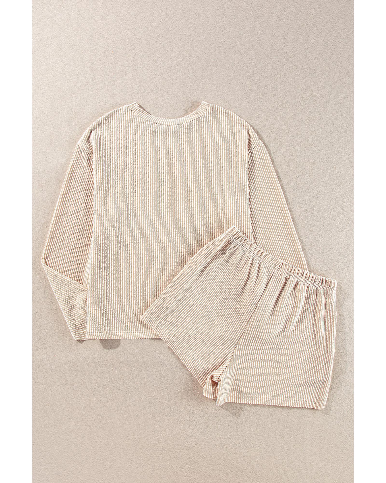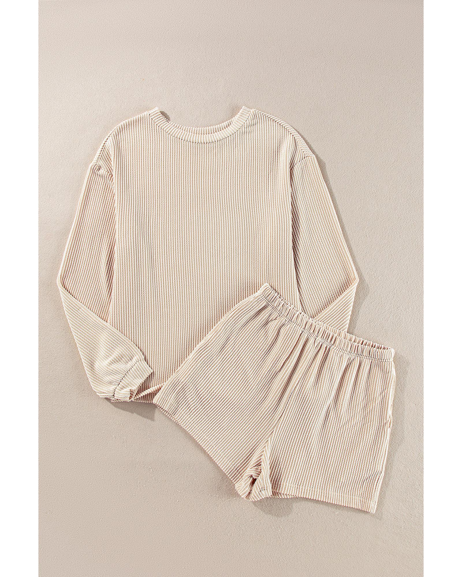Parchment Corded Knit Long Sleeve Top and High Waist Shorts Set – 2XL