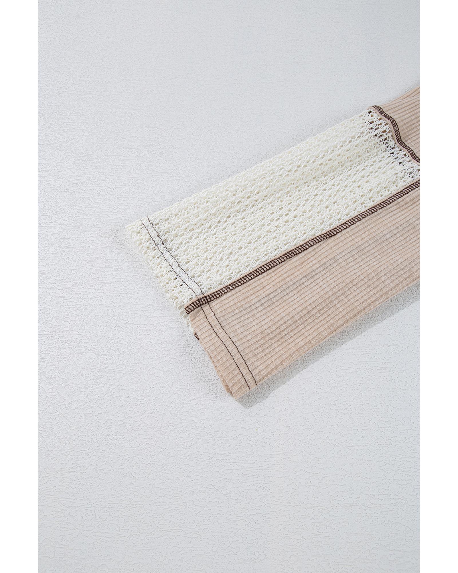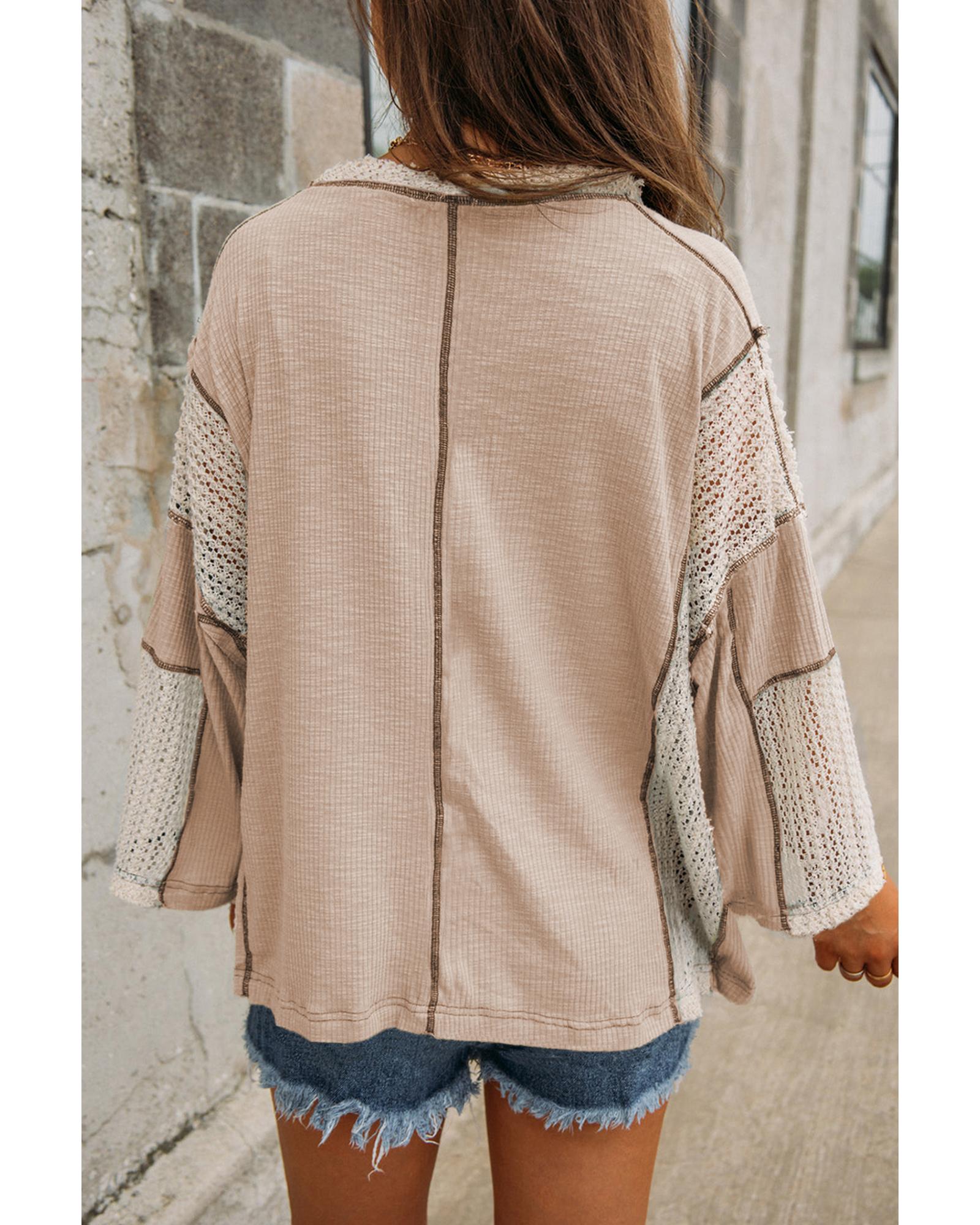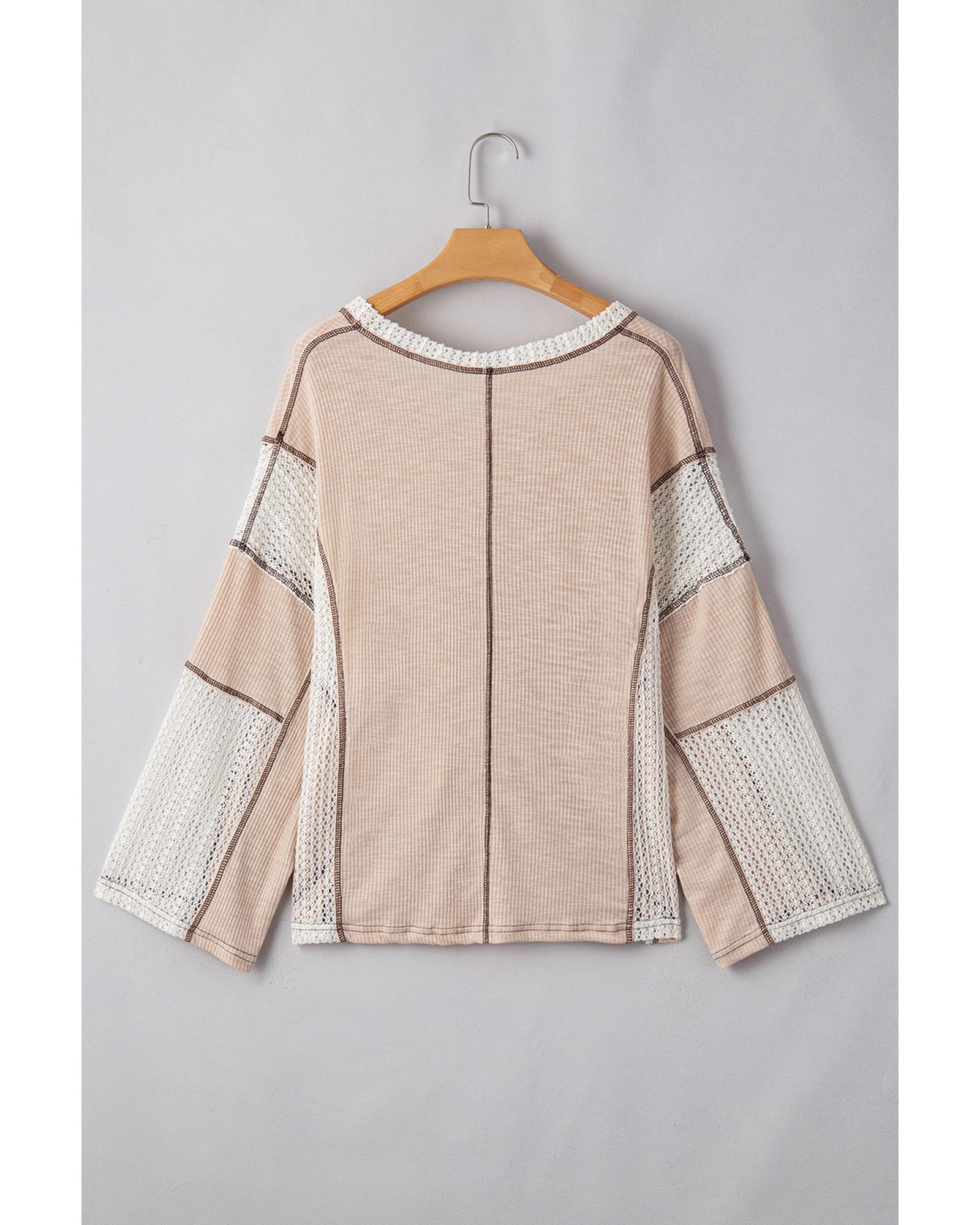 Parchment Crochet Detail Exposed Seam High Low Loose Top – M