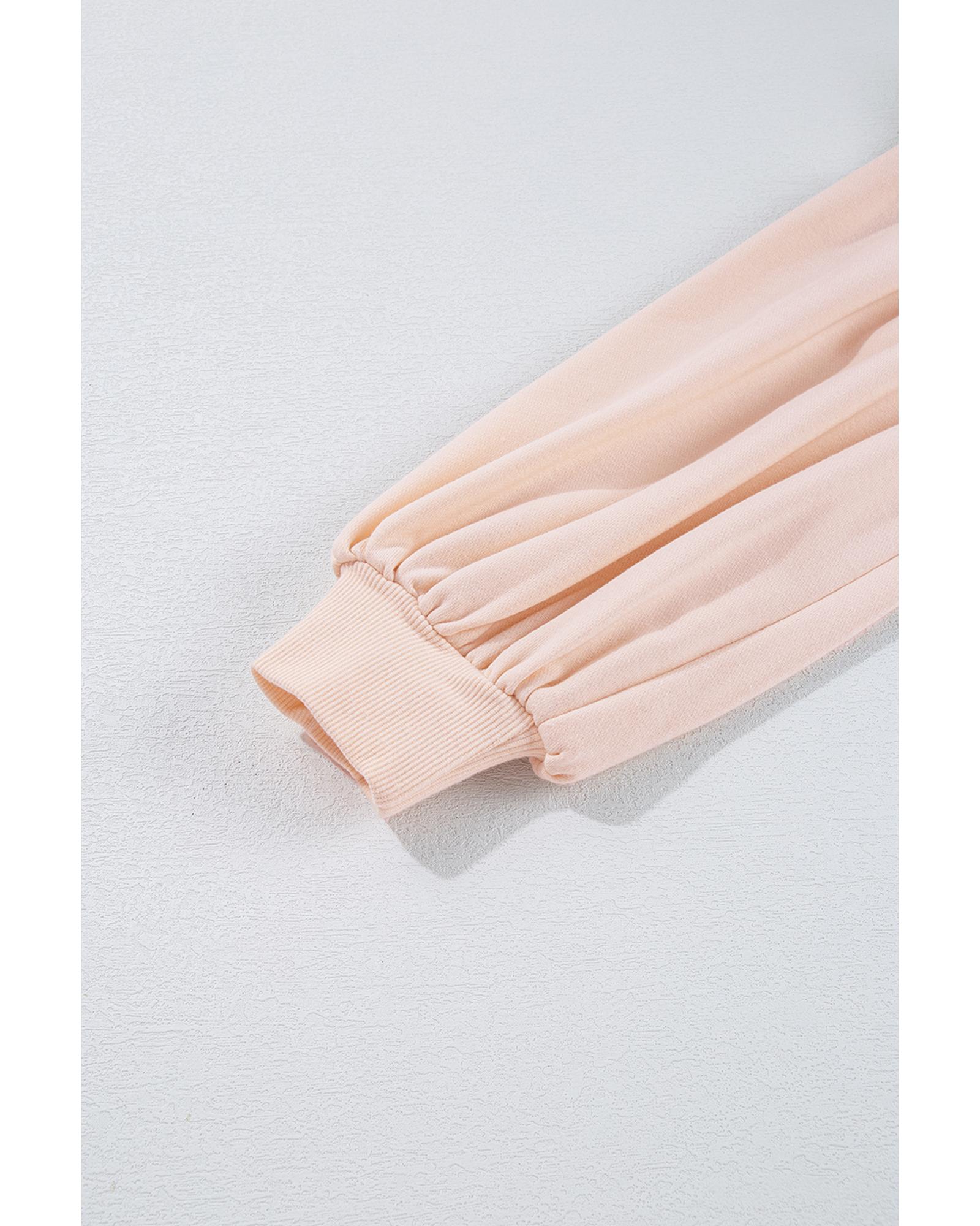 Light French Beige Solid Waffle Knit Patchwork Raglan Sleeve Sweatshirt - L
