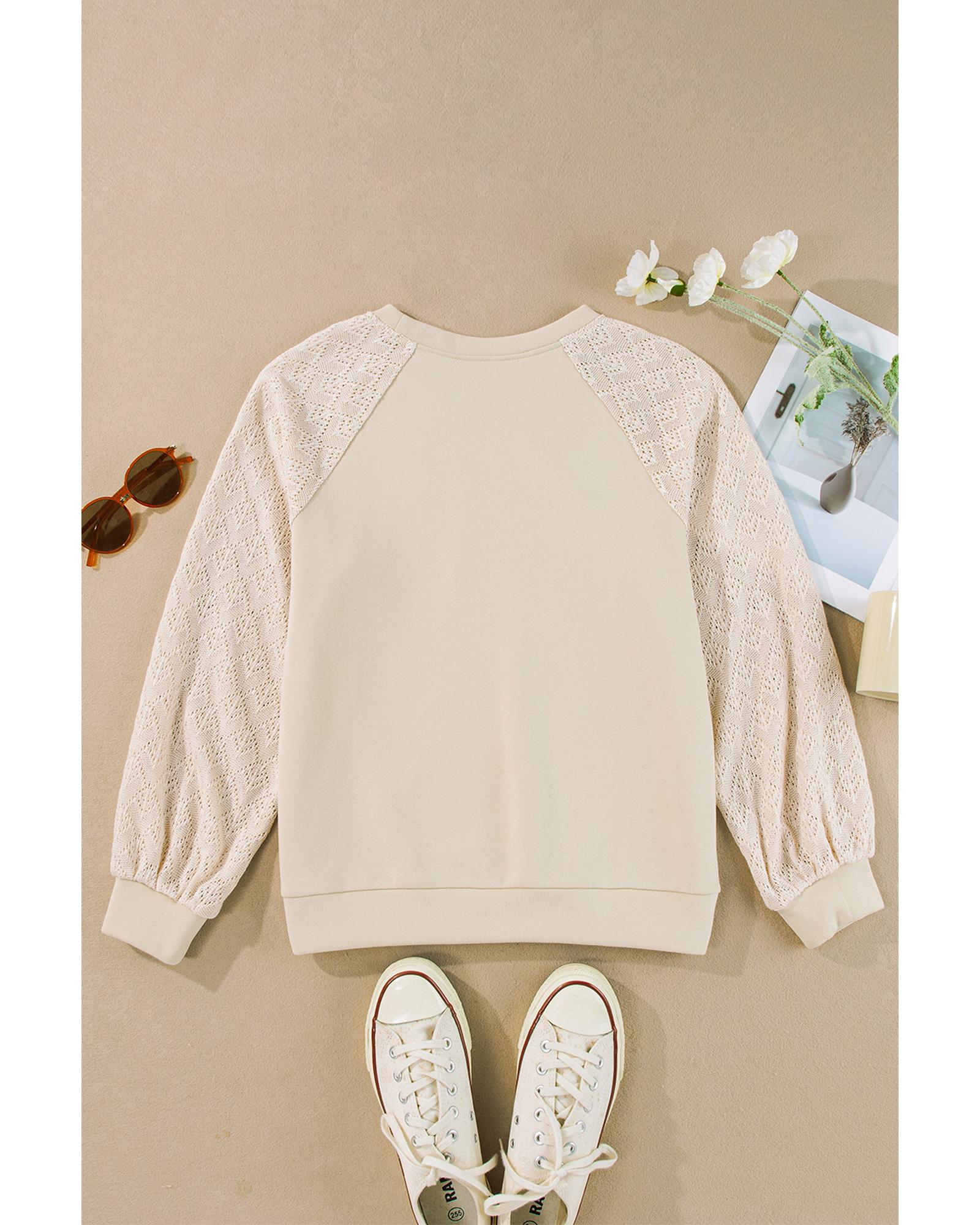 Light French Beige Solid Waffle Knit Patchwork Raglan Sleeve Sweatshirt - L