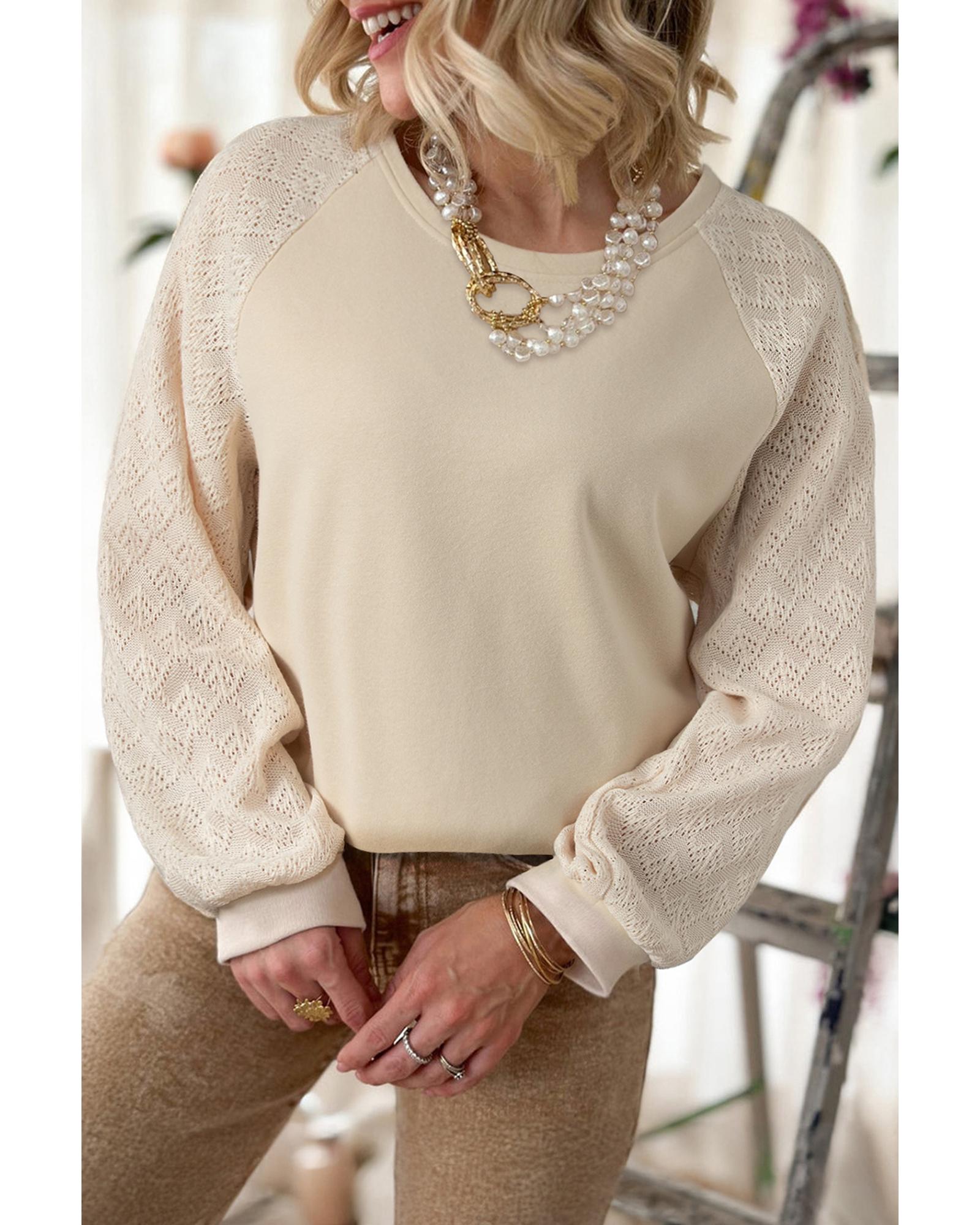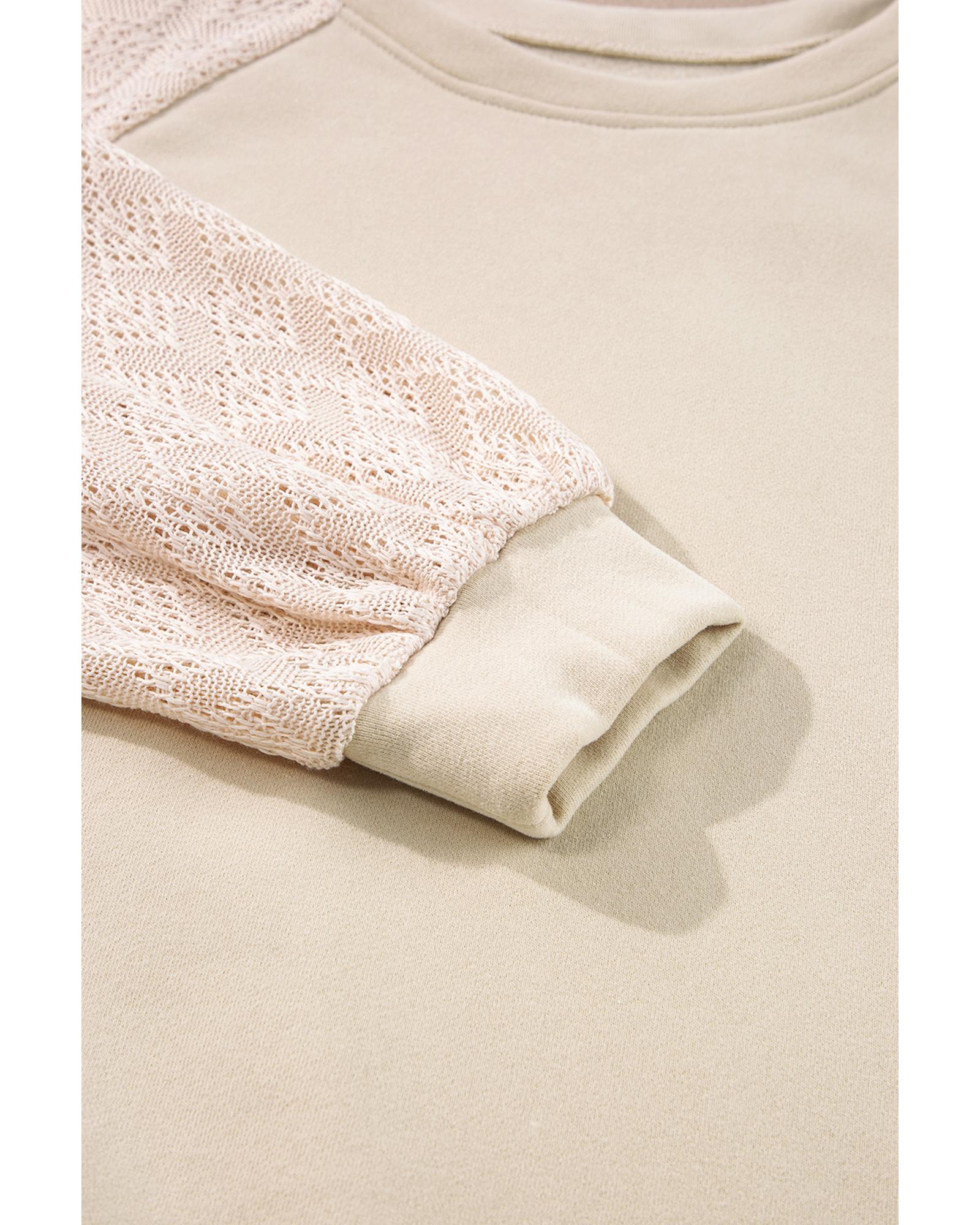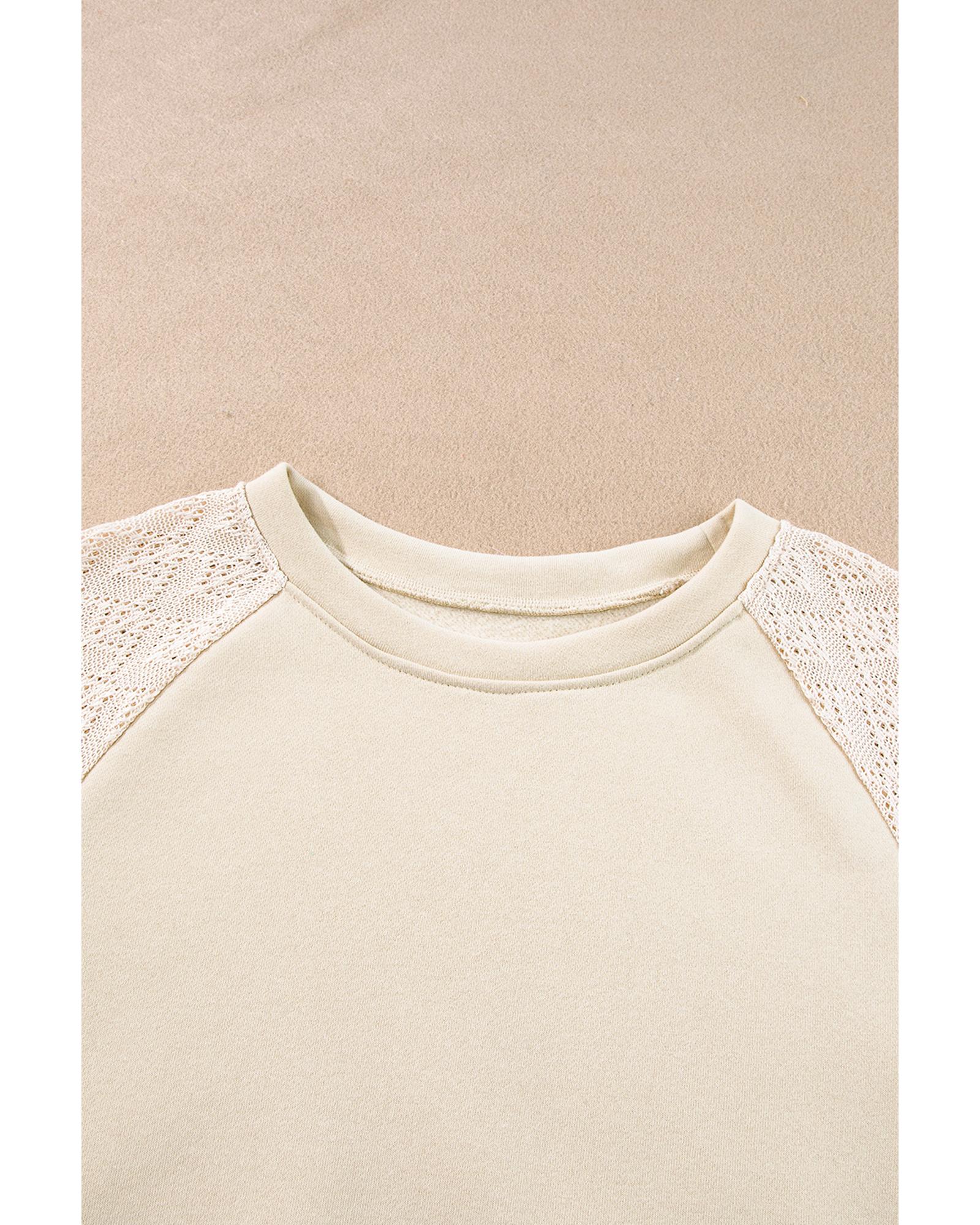 Parchment Eyelet Knit Patchwork Raglan Sleeve Pullover Top – S