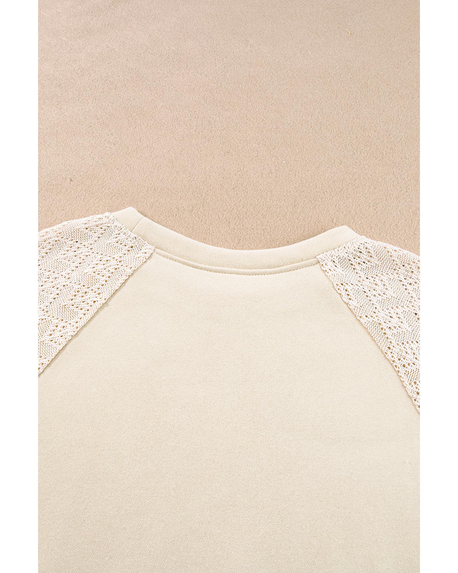 Light French Beige Solid Waffle Knit Patchwork Raglan Sleeve Sweatshirt - L