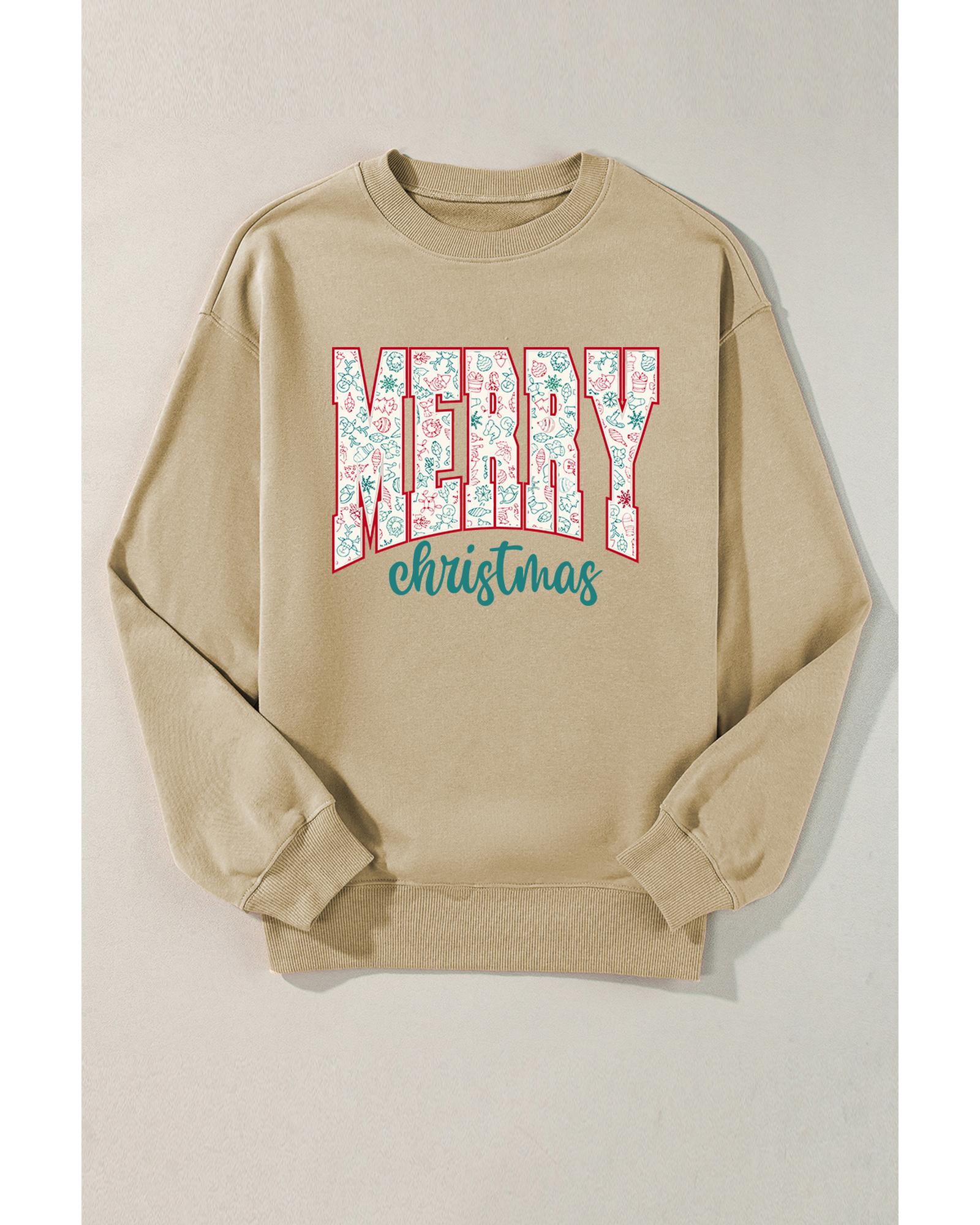 Parchment Festive Element Printed MERRY Christmas Graphic Sweatshirt – L