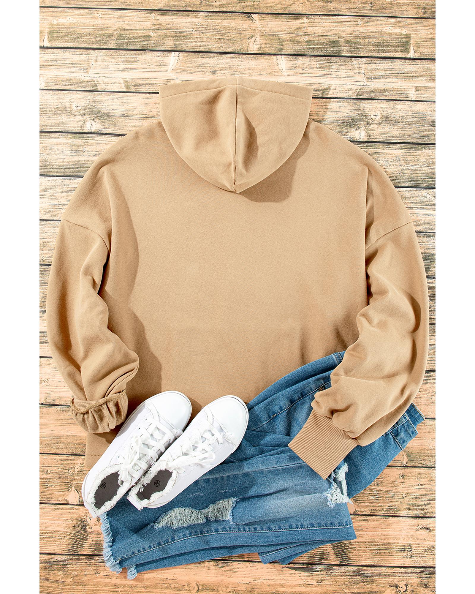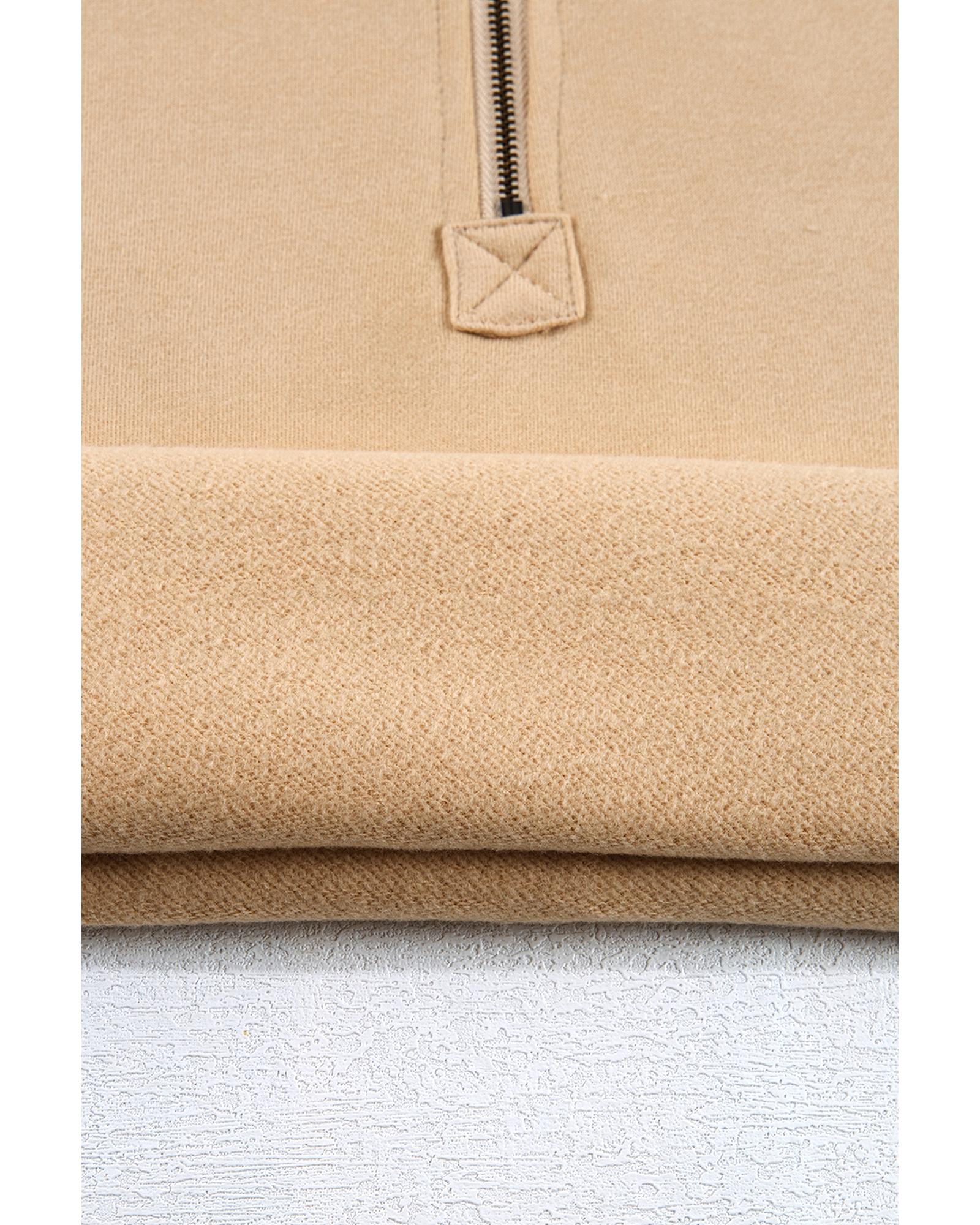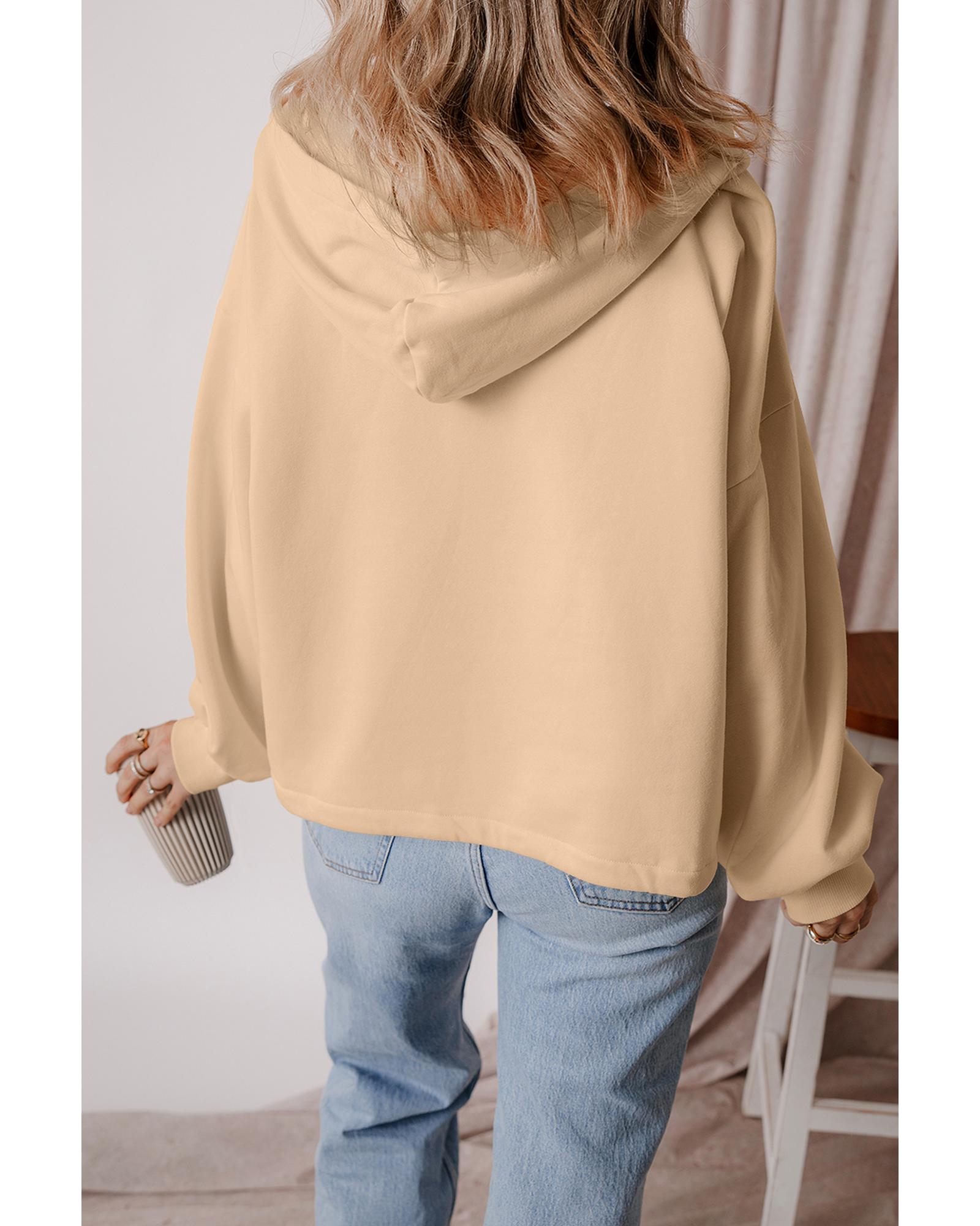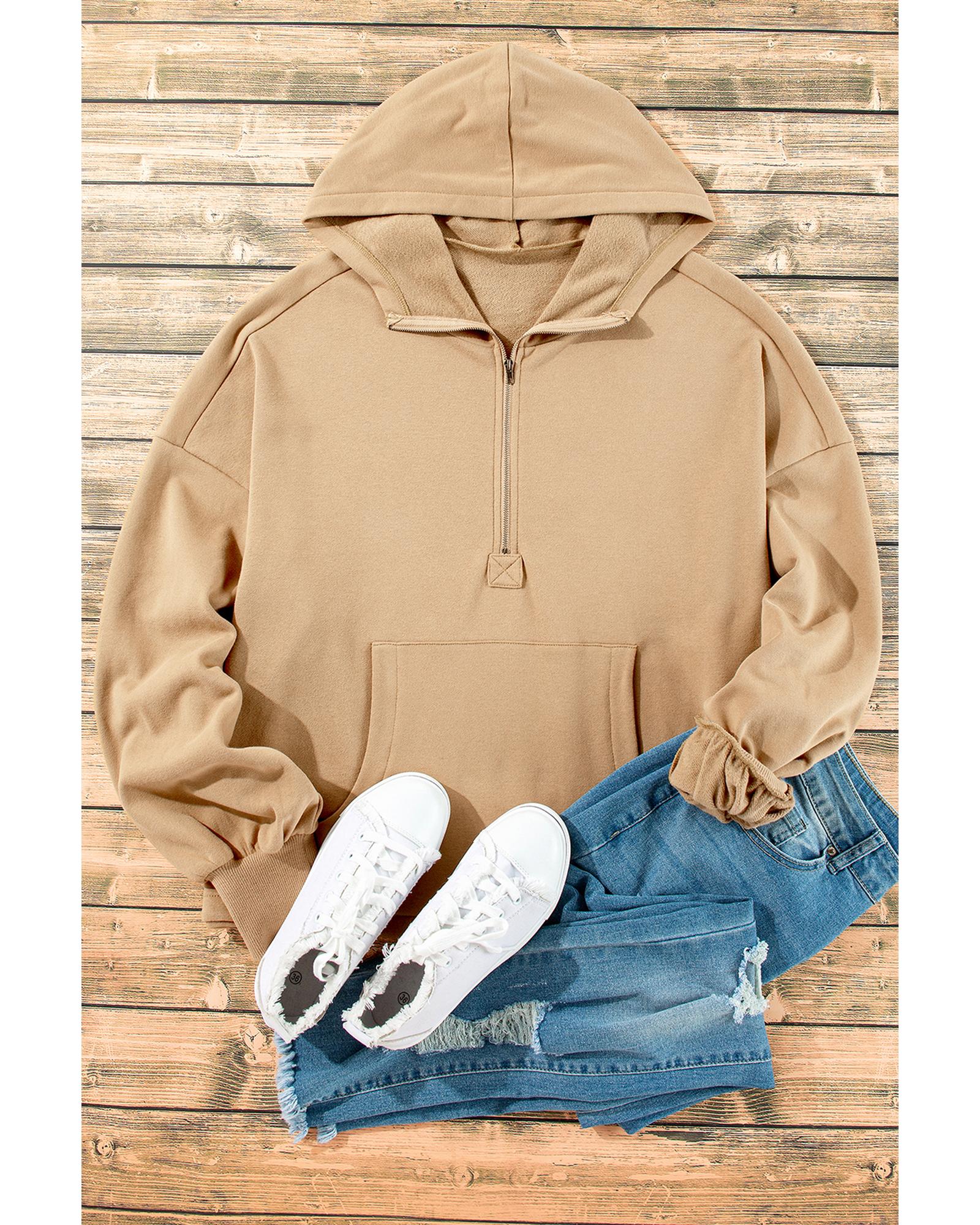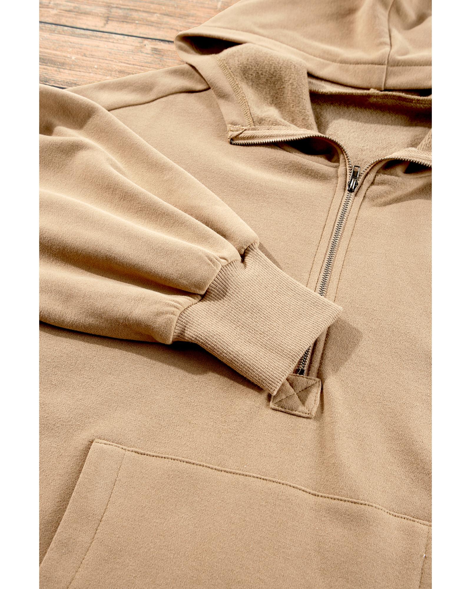 Parchment Fleece Lined Half Zipper Kangaroo Pockets Loose Hoodie – S