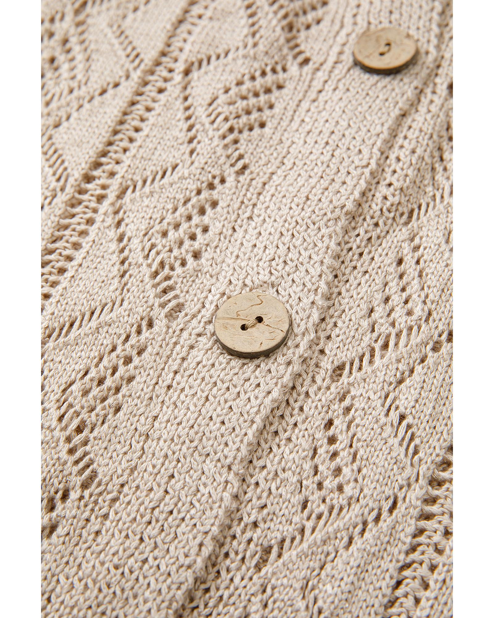 Parchment Hollow Out Buttons Front Long Cardigan – M