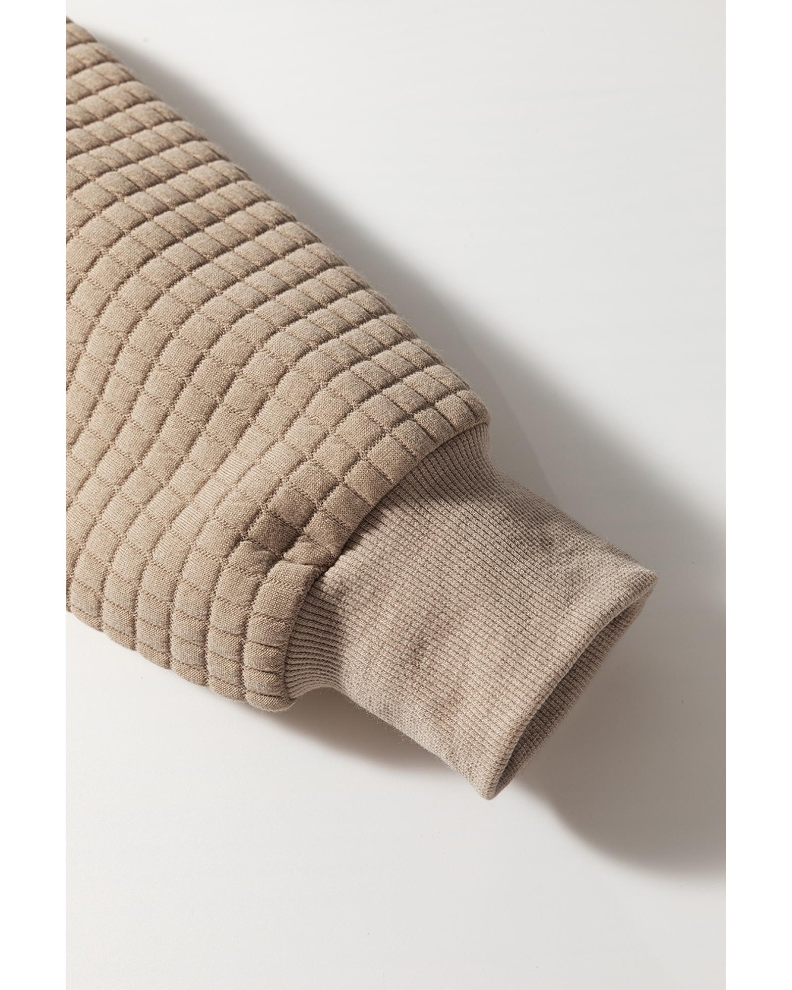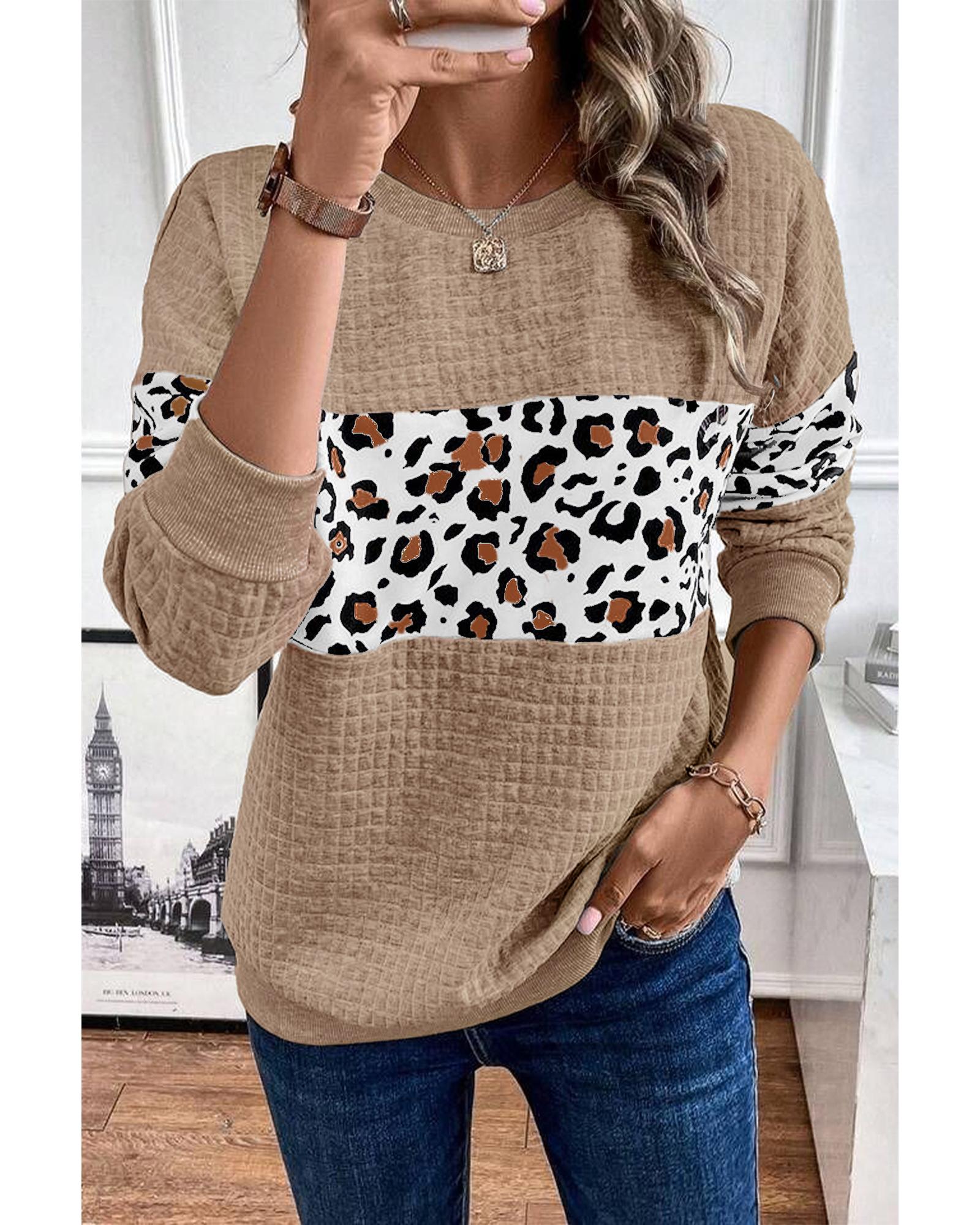 This quilted patchwork crew neck sweatshirt features a trendy fitted design with a striking leopard print pattern. Crafted for both comfort and style, it offers a versatile look suitable for casual wear. The cozy quilted texture adds warmth, making it ideal for cooler days.