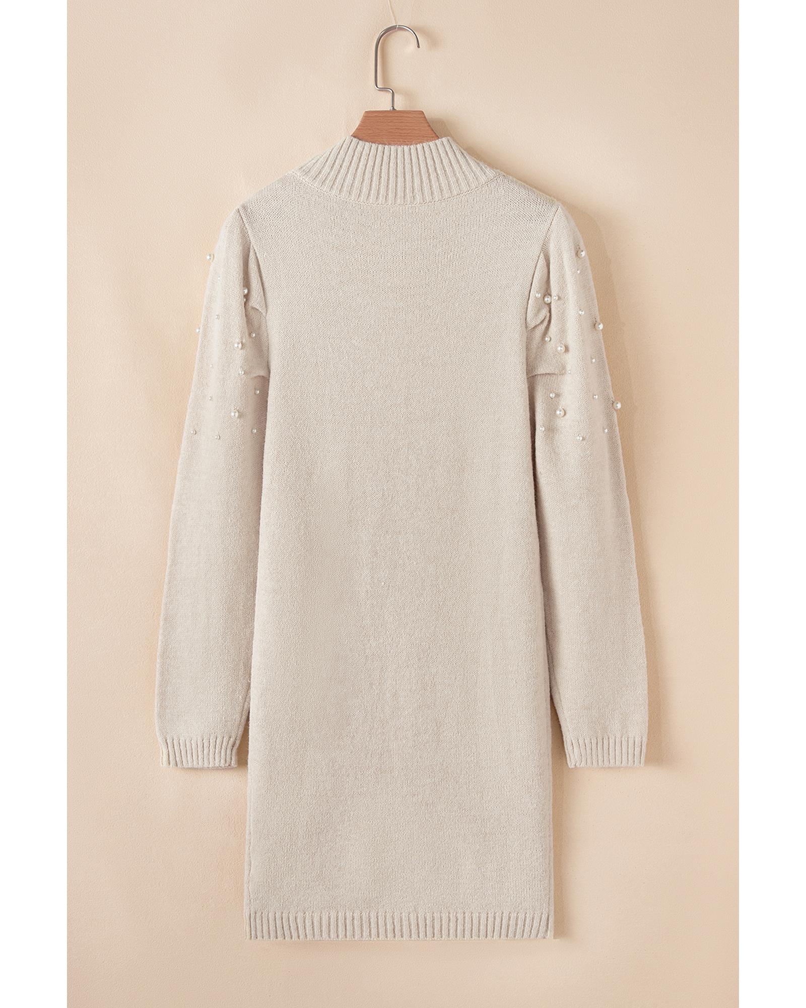Parchment Pearl Beaded High Neck Bodycon Sweater Dress – S