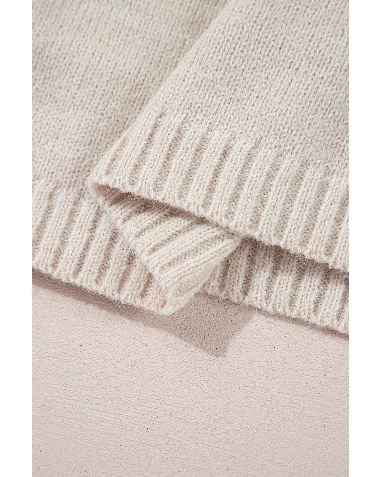 White Colorful Edge Quarter Zip Drop Shoulder Sweater - L