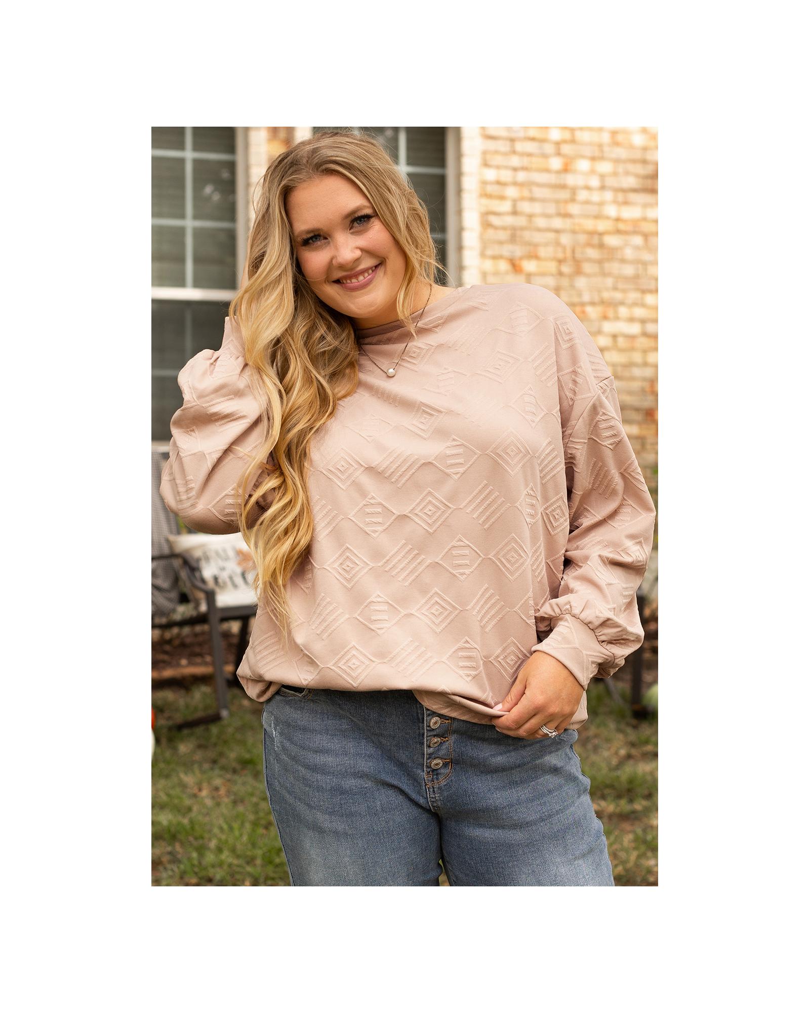 Parchment Plus Size Textured Drop Shoulder Crew Neck Sweatshirt – 3X