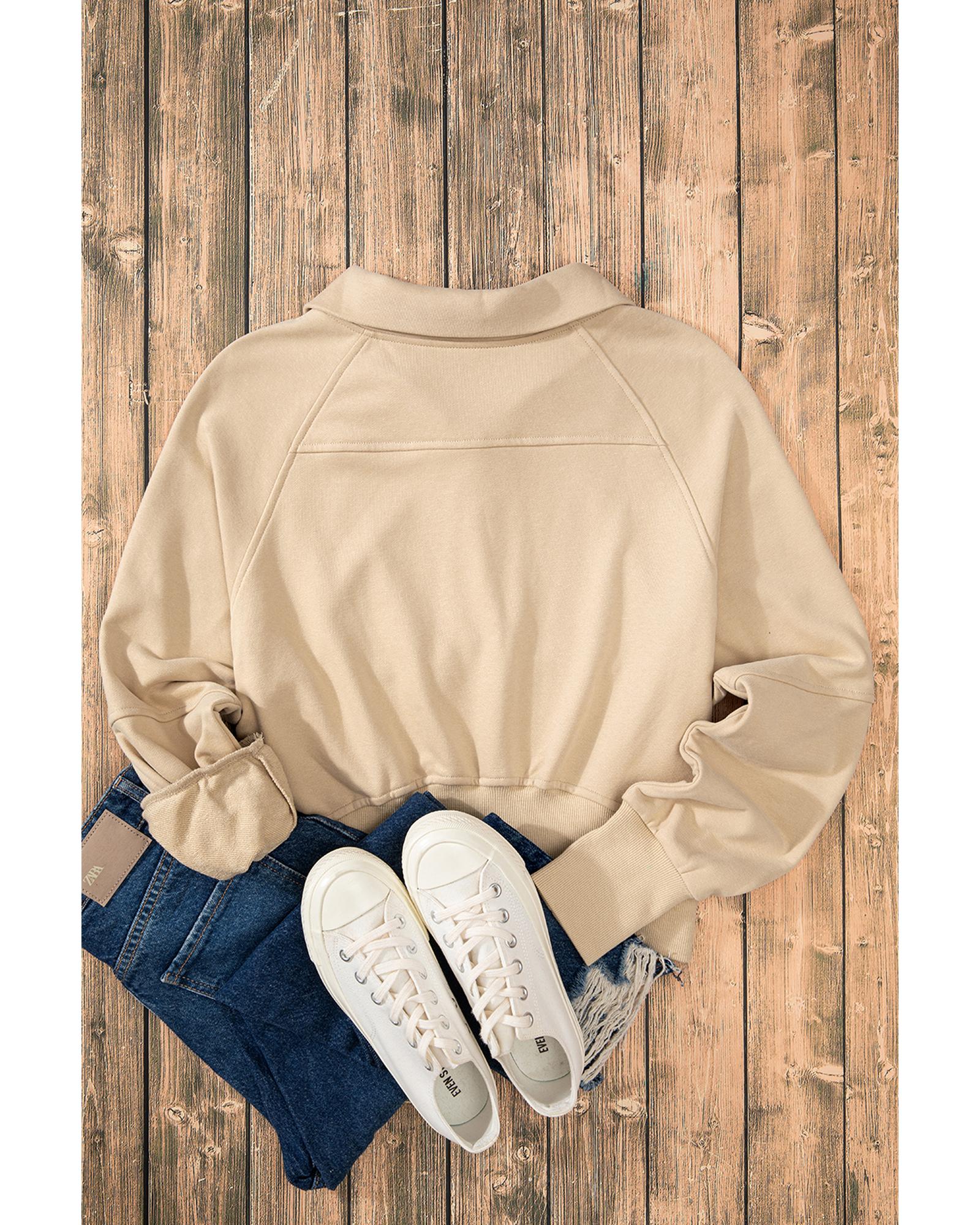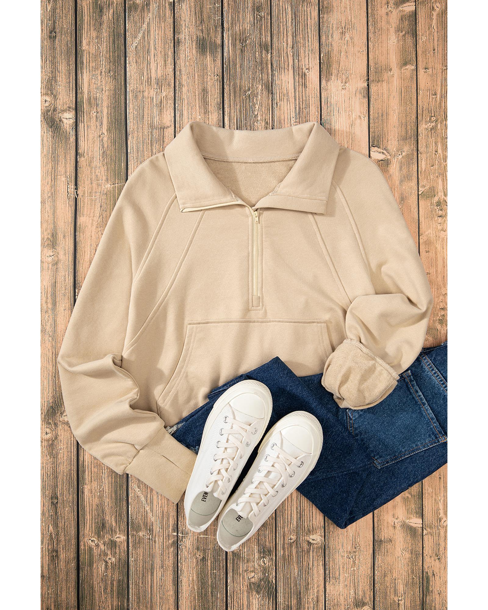 This quarter zip sweatshirt features a stand neck design with a convenient quarter zip for easy layering. It includes a kangaroo pocket to keep essentials close and offers a versatile plain style suitable for various casual occasions. The sweatshirt pairs well with jeans or casual pants for a trendy look, making it a practical addition to your wardrobe.